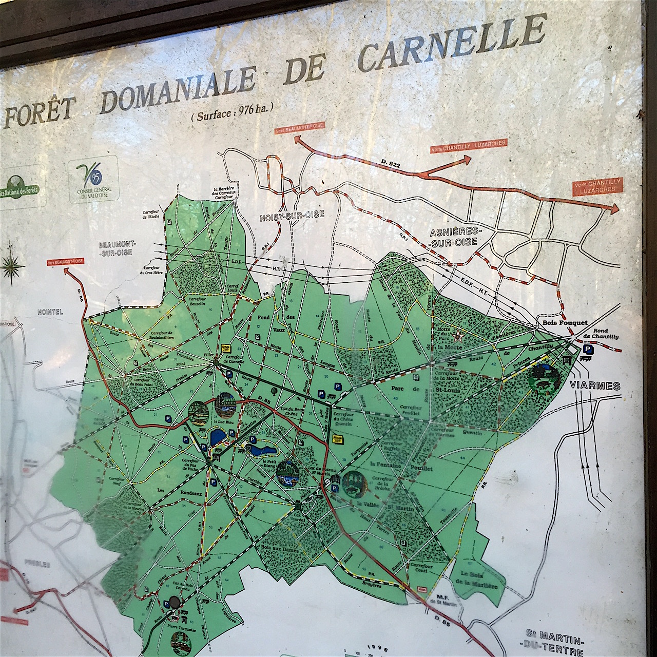 La jolie forêt de Carnelle fait partie des petites perles que compte l’Ile de France en matière de balades et randonnées. Pour vous y rendre, il suffit de prendre le train à la Gare du Nord à Paris, direction de Luzarches. Le parcours proposé débute et se termine à la gare de Villaines-sur-Oise. (Carte Navigo ou tickets Mobilis 5 zones – 16,60€). Cette randonnée assez facile vous fera passer par le village de Saint-Martin du Tertre et le magnifique Château de Franconville , style néo-Renaissance, copie exacte de celui de Maisons-Lafittes. Il abrite aujourd’hui un centre hospitalier de longue durée. Lors de votre passage dans la forêt de Carnelle, quittez le GR1 et faites un détour par l’Allée Couverte La Pierre Turquoise. Ce sanctuaire du néolithique , long dolmen composé de 5 dalles, mesure près de 11 mètres de long. Désormais, sa hauteur ne dépasse pas 1,50m de quoi amuser les enfants en balade. Profitez de la présence des lacs alimentés par le Ru de Presles pour pique-niquer sur les rives accueillantes. Sortis de ce joli bois parfois sillonné par des combes, vous reviendrez dans la plaine. Les cultures alternent ici avec de gros bosquets et se perdent au lointain dans une suite de vallons verdoyants. Cette randonnée de 20 km ne présente pas de dénivelés importants, certains passages peuvent devenir boueux mais rien de bien méchants. Prévoyez l’horaire de votre retour, la fréquence des trains jusqu’à Paris n’est pas très bonne (toutes les heures) .