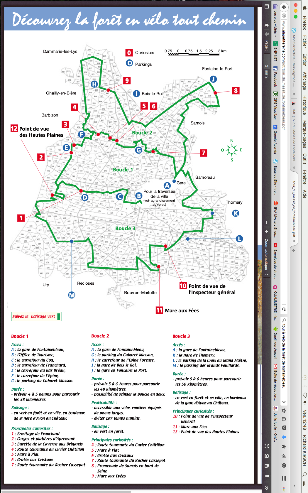Toutefois, on y croise souvent des VTT. Il existe également un circuit vraiment cyclable de 50 km environ (voir la carte) . Cette belle balade est idéale pour découvrir toutes richesses naturelles du massif de Fontainebleau, en matière de végétation et de faune. Vous pouvez bien sûr débuter ce TMF à n’importe qu’elle gare du parcours. Pour cette première étape nous sommes partis de Bois-Le-Roi . Cet itinéraire suit une longue boucle de la Seine avance de s’enfoncer dans la forêt et rejoindre la gare de Fontainebleau-Avon. Les berges offrent de magnifiques aires de pique-nique ou de jeu pour les petits randonneurs.