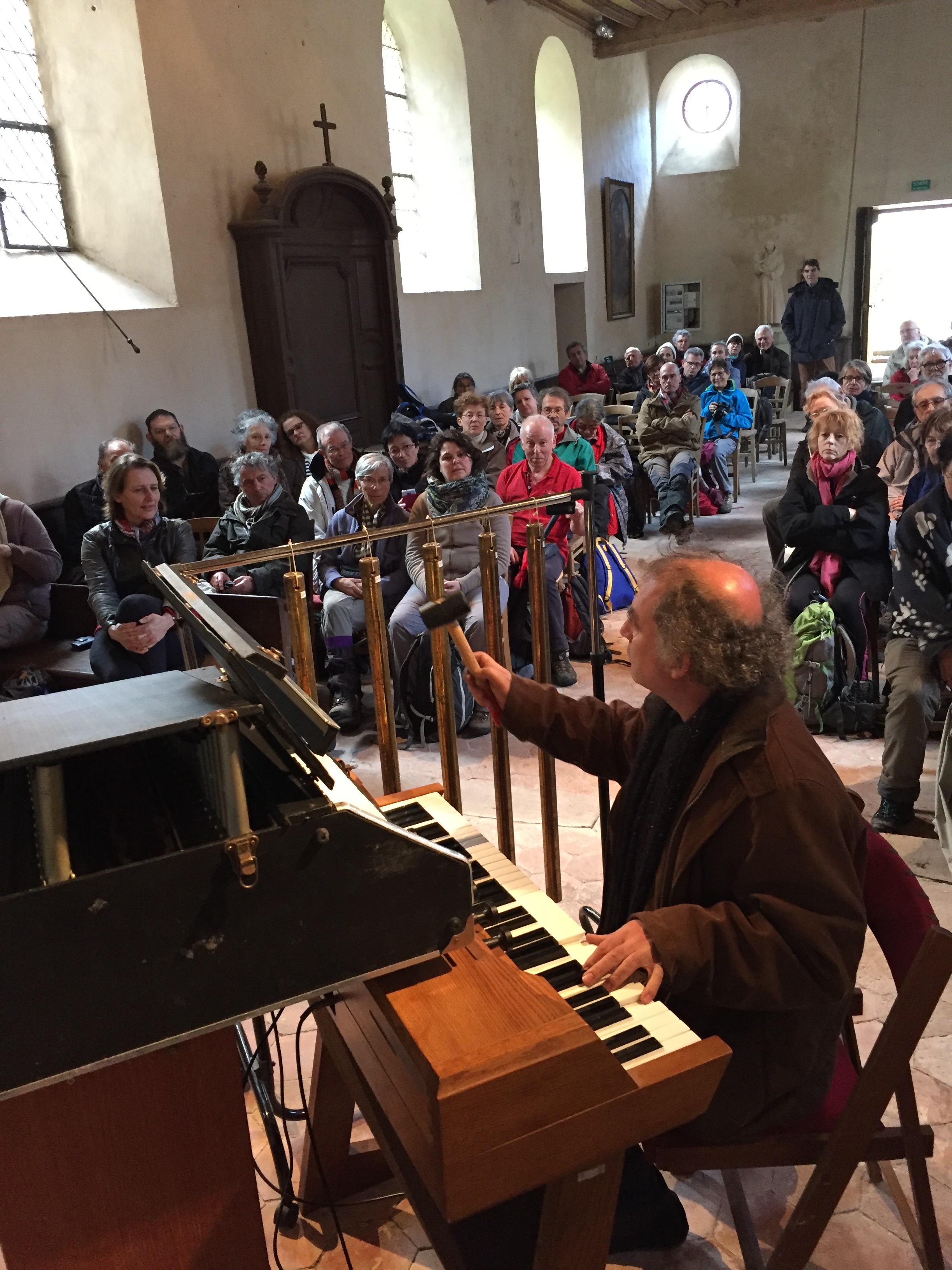 En début d’après-midi, nous avions rendez-vous à l’église de Dampierre. Cette fois l’orgue se combina à la flûte de Pan . Puis la longue colonne de randonneurs prit la direction de Notre-Dame de La Roche pour un court concert en solo. De retour à Lévis Saint-Nom, Francis Vidil et deux jeunes virtuoses se succédèrent au clavier dans des oeuvres de Heindel, Brahms et en improvisation sur des thèmes contemporains voire très jazzy. La Route des Orgues sera aussi l’occasion pour certains de découvrir un très beau parcours de rando d’un niveau moyen avec quelques longues grimpettes typiques de la Vallée de Chevreuse, rappelons-le, un site protégé.