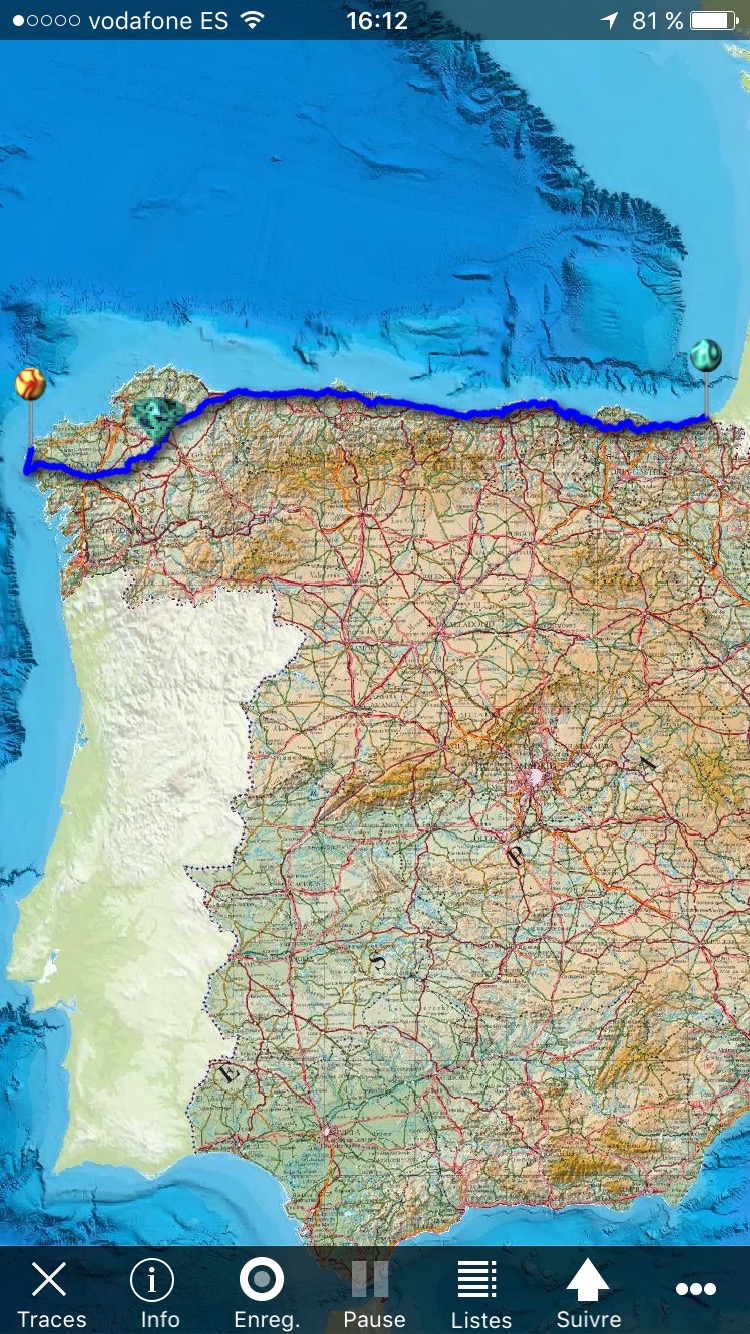 Les chemins de Compostelle sont en général très bien balisés mais il arrive parfois que l’on rate une marque ou que l’on se trompe dans une des variantes proposées. Combien de fois me suis-je égaré à la sortie des villes ou de village ?! Alors, parfois j’ ai fait appel au Gps pour éviter de marcher des kilomètres inutiles. L’App Iphigénie inclut les cartes topographiques de plusieurs pays européens dont l’Espagne, un service compris dans l’abonnement annuel de 15€ environ. Il suffit de charger en wifi les fonds de carte au 1 :25.000e avant le départ ou en cours de route, ainsi que la trace GPS en fichier .Gpx de l’ensemble du Camino. Il en existe de nombreuses sur le Net. J’ai utilisé celle offerte par Rother avec son guide . En cas de doute sérieux, j’ouvrais l’App, j’affichais la trace et vérifiais si j’étais bien sur le chemin. Toutefois, cette App m’ a aussi permis d’improviser des variantes personnelles et découvrir des petits villages , des panoramas non mentionnés sur mon guide avant de reprendre le tracé officiel.