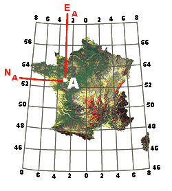 Les coordonnées d’un point se mesurent d’ordinaire en longitude par rapport au méridien de Greenwish et en latitude par rapport à l’équateur .On les qualifie de sexagésimales et elles s’expriment en unités d’angle (degrés, minutes, secondes).