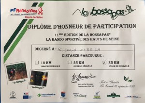 Cette édition de la Bossapas a rassemblé un sacré plateau de randonneurs parigots qui , comme moi, avaient choisi ce jour-là de repousser un peu plus leurs limites. J’ai avalé ces 35 km 100% casse-pattes en exactement 7 heures. Pas peu fier ! Bien préparé et en gérant la distance, rien de cassé. Juste une étrange et tenace douleur de fessiers venue d’ailleurs !