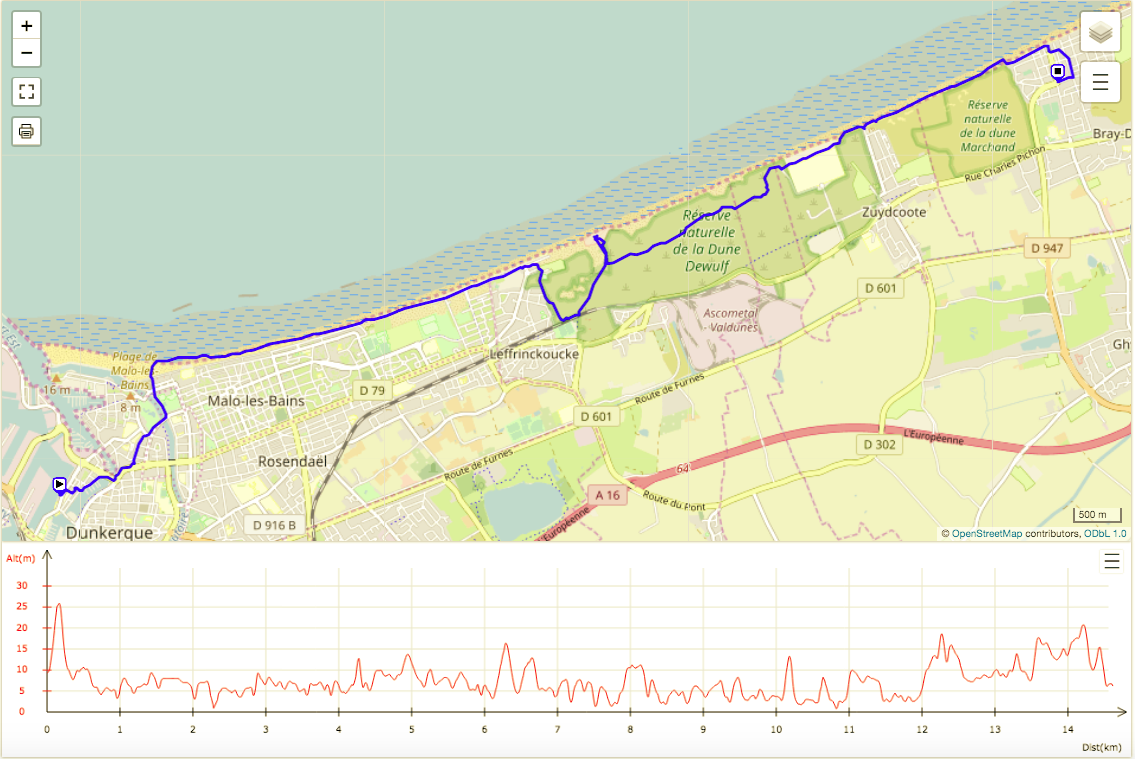 Traces des randonnées et balades : La randonnée des Dunes de Flandre – Villas et Quartier Excentric de Dunkerque