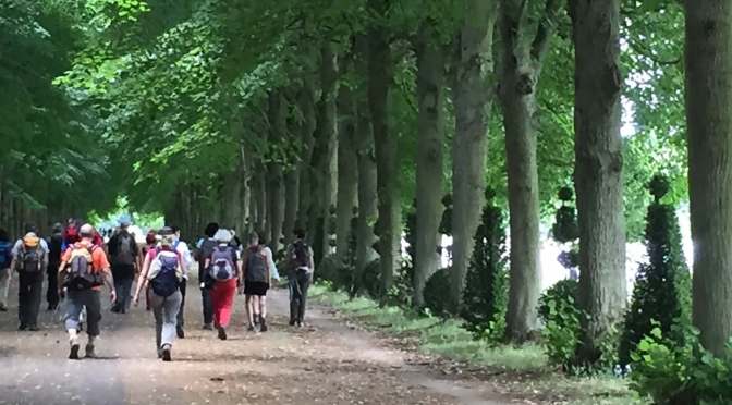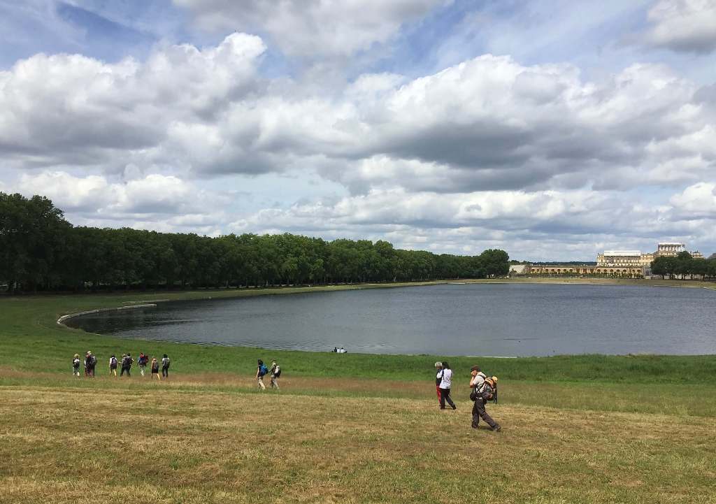La seconde idée géniale de Stéphane, notre guide, fut de terminer cette randonnée par le tour complet du Grand Canal afin de faire bonne mesure. Là encore Le Nôtre avait vu grand , ignorant en cette fin du XVIe siècle qu’il signerait notre chemin ..de croix ! Ce plan d’eau large de 60 m mesure 1,7 km d’ouest en est et 1 km du nord au sud ! Les matheux auront vite fait le calcul, le périmètre de l’œuvre à parcourir s’élève à près de 6 km !! Après une matinée longue de 15 km, les jambes furent un peu lourdes pour lever le camp sachant que Stéphane ne déroge jamais à la tradition du rhum arrangé, un mixture faite maison à base de gingembre, cannelle, épices diverses, à côté de laquelle la potion magique d’Astérix fait figure de tisane ..avec les effets inverses !