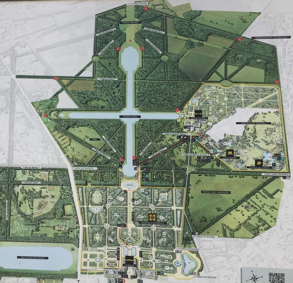 Idéal en tant qu’antigel les mois d’hiver, le digestif « n’arrange » pas vraiment lorsque la température ambiante dépasse les 25°c ! Le tour de cette satanée croix (que Dieu pardonne le misérable marcheur) a donc été interminable et fatigante d’autant que la moitié de la région parisienne s’y était donné rendez-vous pour un pique-nique géant de post-déconfinement . Soyons objectif, le tour de ce Grand Canal reste agréable , il suffit de marcher à un bon rythme pour abréger sa magnifique monotonie et de partager en silence l’effort des joggers ou des rameurs en plein effort durant ce lourd dimanche après-midi. Un peu d’histoire ? Le Grand Canal fut en son temps l’autre grande attraction de Versailles. Le Roi y organisait déjà des régates durant lesquelles des répliques miniatures des navires de guerre s’affrontaient sous le regard de milliers de courtisans. Aujourd’hui encore le Cercle Nautique de Versailles perpétue depuis de nombreuses années la tradition avec des courses d’aviron d’un niveau très relevé.