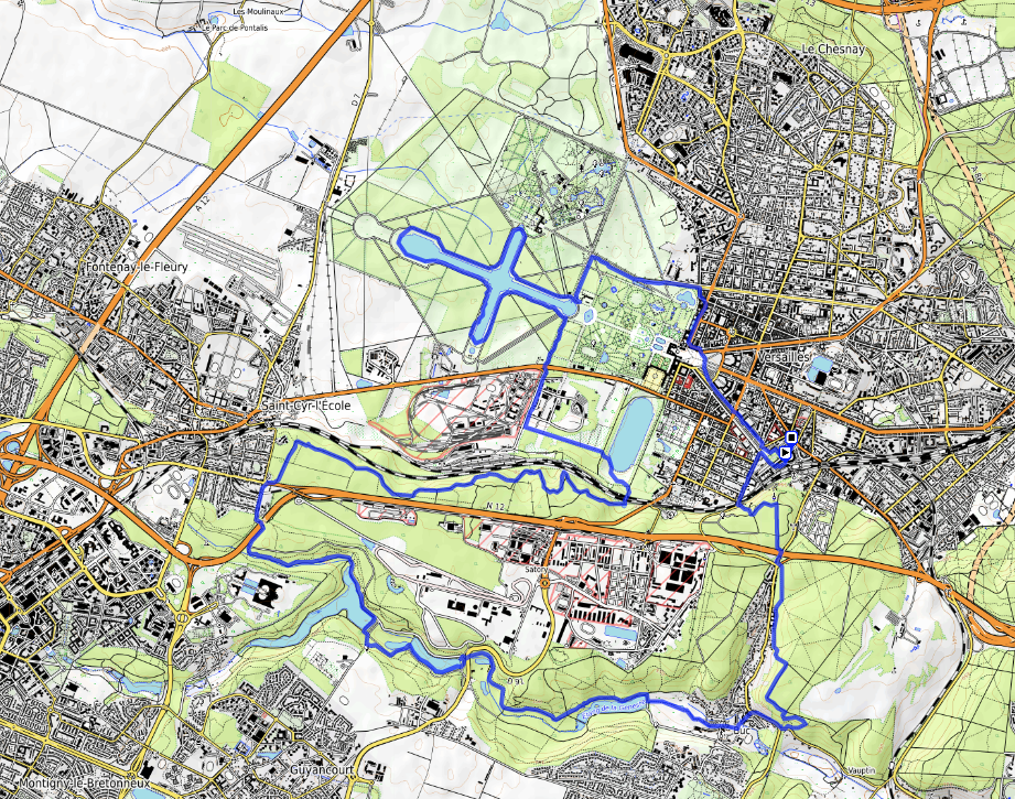 La forêt domaniale de Versailles faisait partie des « Bois de la Couronne » avant de devenir domaniale en 1871. Située à 30 km de la capitale, d’une superficie de 1037 ha, elle s’intègre dans un croissant forestier de l’ouest parisien comprenant les forêts domaniales de Meudon, Fausses-Reposes, la Malmaison, Marly, Saint-Germain et Montmorency. Voici une randonnée de 26 km pour en découvrir tous les aspects et terminer dans la joie (et la douleur) par un joli ..chemin de croix dans le château de son altesse Louis XIV !!