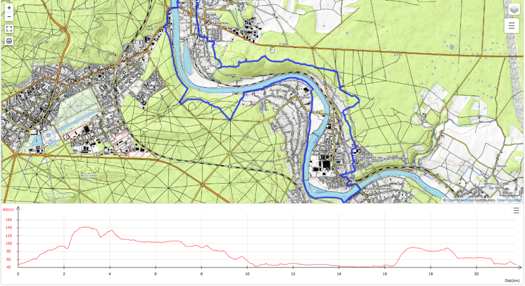 Il lui suffit de prendre une carte au 1:25.000e , d’identifier quelques GR et PR, décrypter les reliefs et la nature de l’environnement, choisir les gares pour y accéder et puis laisser parler ses envies en évaluant le nombre de kilomètres sur cette carte papier de l’ IGN ou sur un logiciel comme Openrunner. En amont de Paris la Seine déroule ainsi sont cour dans des univers très variés que découvrent les marcheurs le long de ses rives, soit près des flots , soit sur les hauteurs de ses coteaux. Nous sommes descendus cette fois à la gare de Samoreau pour commencer une boucle sur la rive droite du fleuve afin d’atteindre le petit port de Champagne-sur-Seine. Le sentier serpente dans une étroite bande boisée puis après une dizaine de kilomètres, débouche sur le pont de Champagne-en-Seine, l’occasion de passer rive gauche pour remonter