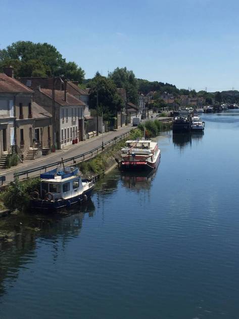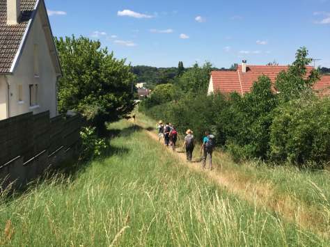 vers Thomery. Le chemin se veut plus roulant, nous partageons dorénavant l’espace avec les cyclistes et les poussettes. Nous pénétrons discrètement dans les propriétés privées en ouvrant et refermant les portes du passage laissé libre aux mariniers. La chaleur de juillet invite les plus audacieux des riverains à la baignade ou à hisser les voiles des dériveurs légers et se mettre au stand up paddle. Il est plus de 13h, les BBQ émoussent notre appétit, le pique-nique ne peut plus attendre !