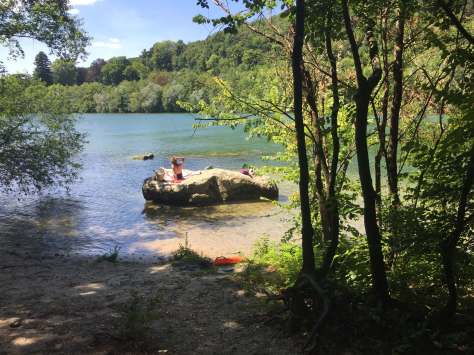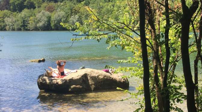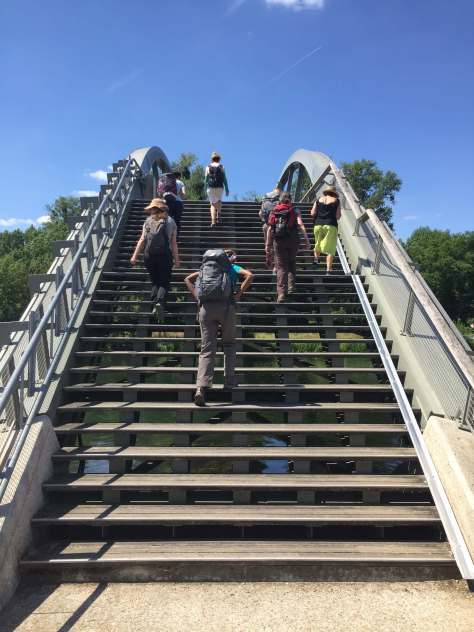 La chaleur de juillet entre baignades sauvages et bronzette. Une belle passerelle aide à franchir le Loing.