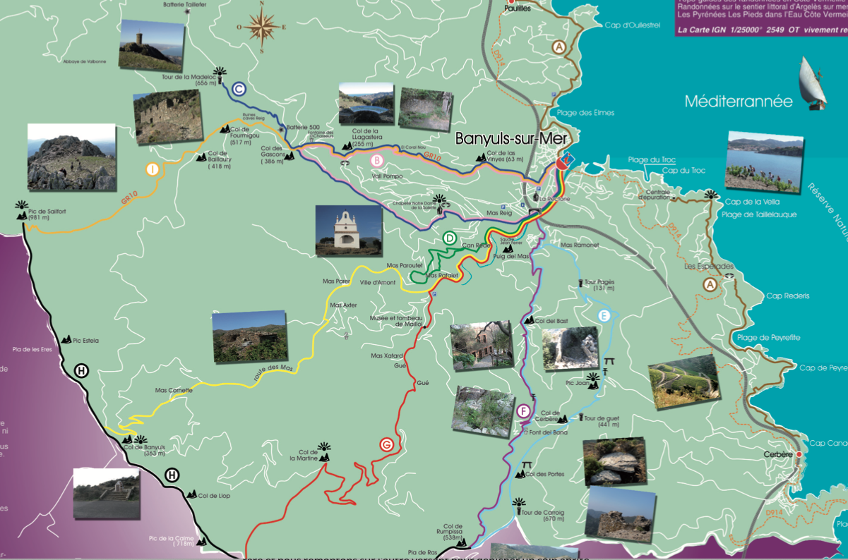 Avant de vous lancer sur les chemins de la région , le mieux sera de vous rendre à l’Office de Tourisme sur la croisette ou encore à la Maison de la randonnée (ouverte de 9h à 11h00) et d’investir 4 € dans la petit Guide des Randonnées autour de Banyuls. C’est ici que se donnent rendez-vous les groupes au départ des 9 itinéraires mentionnés dans la brochure.