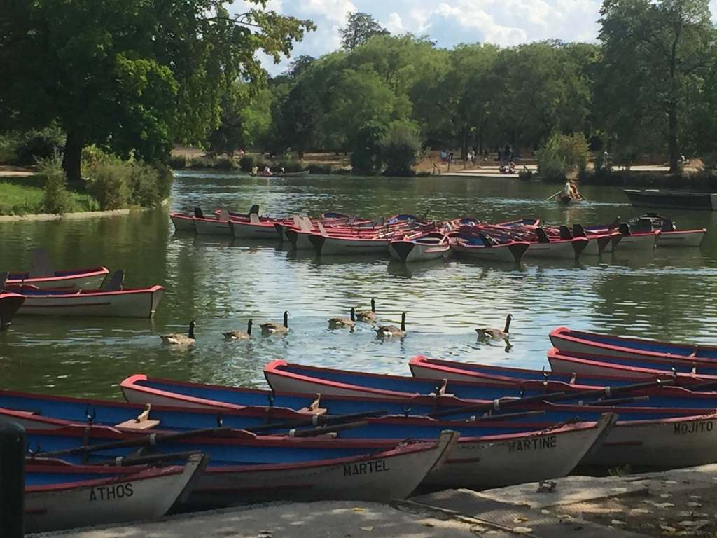 J‘emprunte l’aérienne passerelle Simone de Beauvoir pour franchir la Seine vers le joli Parc de Bercy. Les innombrables restaus du Village attirent ici miraculeusement du monde. Puis je passe sous les voies SNCF , passage toujours aussi glauque, afin de prendre l’interminable rue Wattignies et rejoindre la pelouse de Reuilly, siège de la Foire du Trône du monde d’avant. En termes de pelouse, l’endroit n’en a plus que le nom. La canicule a grillé totalement les espaces verts et les arbres se sont débarrassé de la moitié de leur feuillage pour survivre. Quelques barques naviguent mollement sur le lac Daumesnil où les oies Bernache tirent des bords sereins. Je prolonge cette tranquillité dominicale hors du temps en bouclant le tour de la pièce d’eau avec en ligne de mire le marchand de glaces installés depuis mon enfance devant le Musée Nationale de l’Immigration.