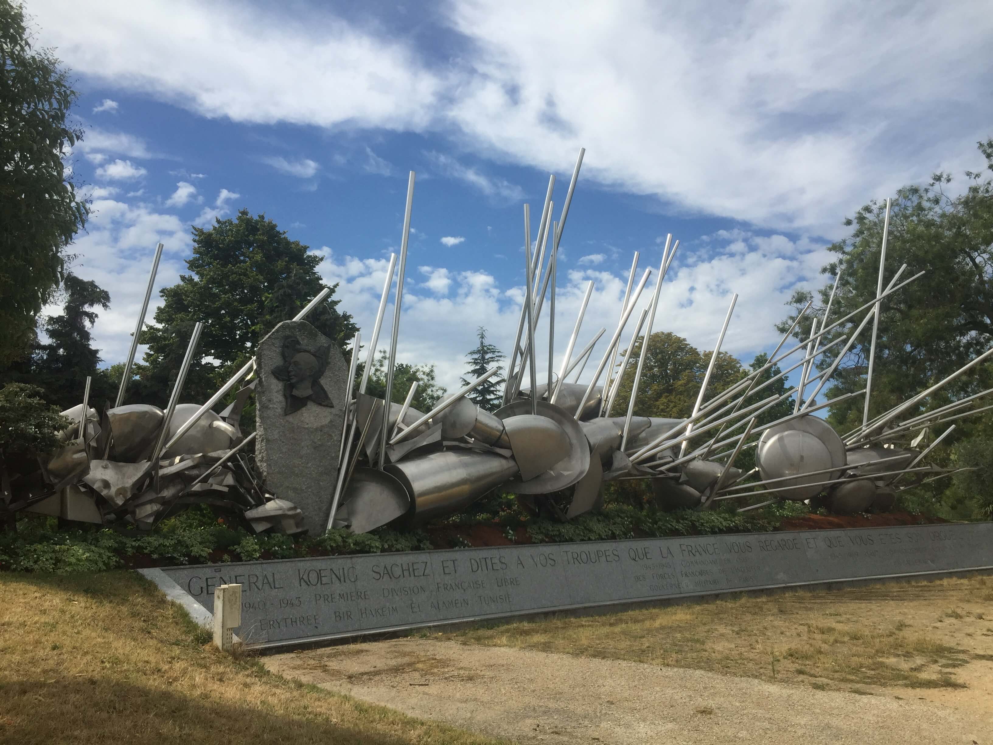 Le petit train menant au Parc s’attraction a été remisé en attendant des jours meilleurs. Je fais une pose casse-croute dans le square Alexandre et René Parodi, compagnons de la Libération. Le Monument 100% inox Vent des Batailles dédié au Général Koenig y siège majestueusement et domine la place en travaux gigantesque depuis des mois. La future gare du RER E entrera en service vers 2022. Au bout de l’avenue de la Grande Armée, l’Arc de Triomphe disperse ses avenues sur les quatre horizons, elles aussi désertées. La circulation habituellement chaotique de la place de l’Etoile n’est plus qu’un souvenir. Je prends l’avenue Marceau jusqu’au Pont de l’Alma. Surprise hallucinatoire, le restaurant libanais le Nourot connait une belle affluence. Les Parisiens privés de voyage s’offrent sans doute ici une touche raffinée d’exotisme moyen-orientale, celle d’un pays récemment meurtri par l’explosion du port de Beyrouth.