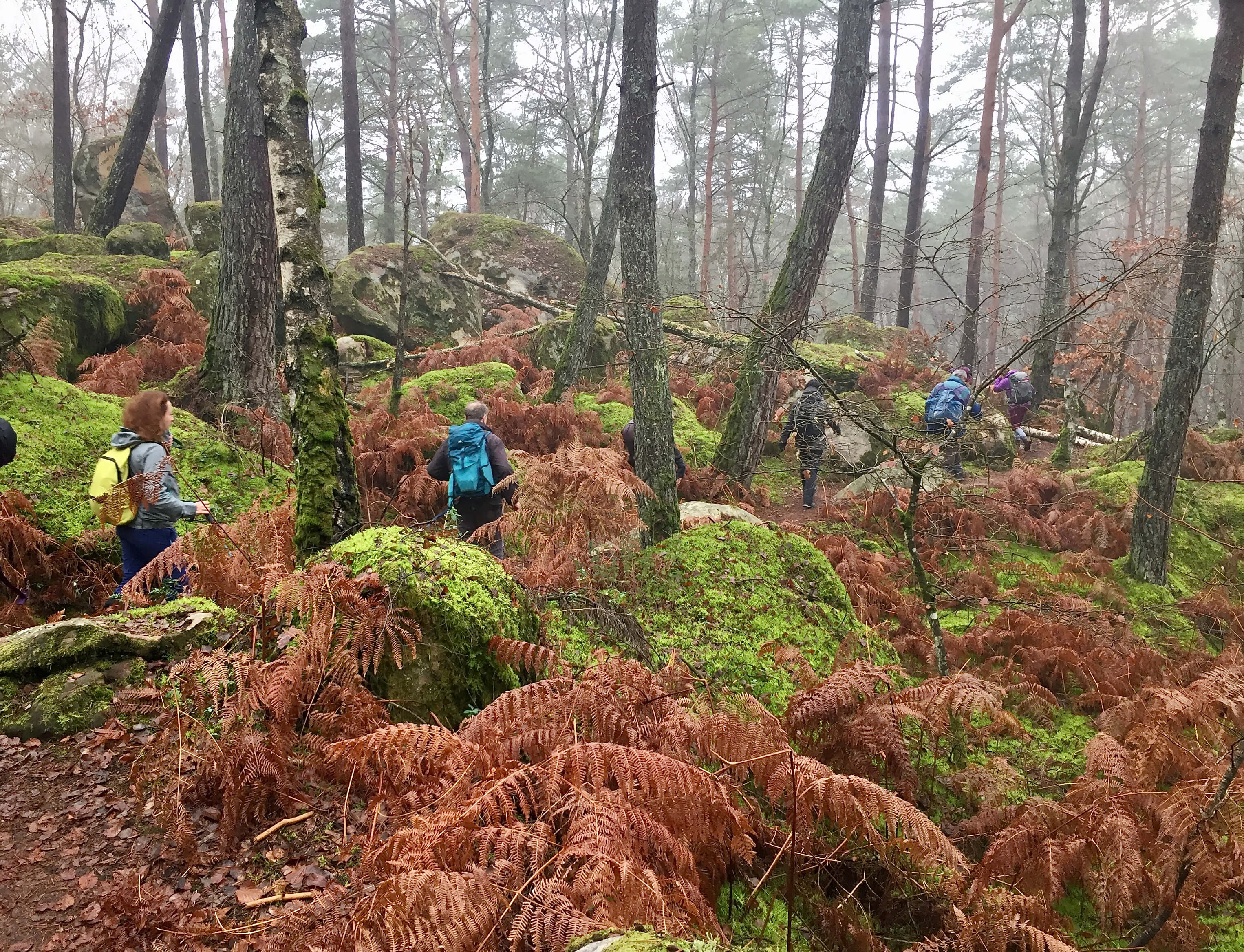 L’année 2020 s’est terminée sur fond d’apocalypse planétaire. Certains ont survécu à la Covid-19, d’autres à l’enchaînement des gueuletons festifs. Le confinement du citadin en télétravail le pousse à dépasser le seuil des fameuses 35h et réveillent en lui des envies d’évasion au delà du béton de la ville plombée par un couvre-feu sidérant. Premier dimanche de 2021 la gare de Lyon retrouve son influence de randonneurs. Même si le thermomètre amorce une chute sévère et qu’un épais brouillard enveloppe le domaine de Fontainebleau, rien ne pourrait entraver leur pas vers cet univers végétal propre à guérir leur morosité, au moins durant quelques heures.