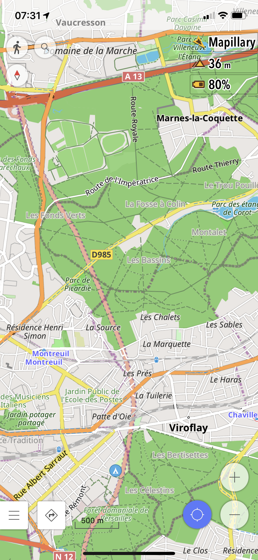 Il faut d’abord disposer d’un document numérique capable de visualiser les chemins AVEC PRECISION (sentiers ordinaires, GR, PR balisés, route de Compostelle..etc..) , les courbes de niveau , les points remarquables pouvant servir de repère (église, château d’eau, voie de chemin de fer..) Cette précision et ce détail doivent être équivalents à ceux des cartes au 1:25000e papier. Encore faut que le développeur de l’App s’y soit intéressé ou que le randonneur sache correctement paramétrer son App entre usage à pied, en vélo, en bagnole , usage urbain ou outdoor.