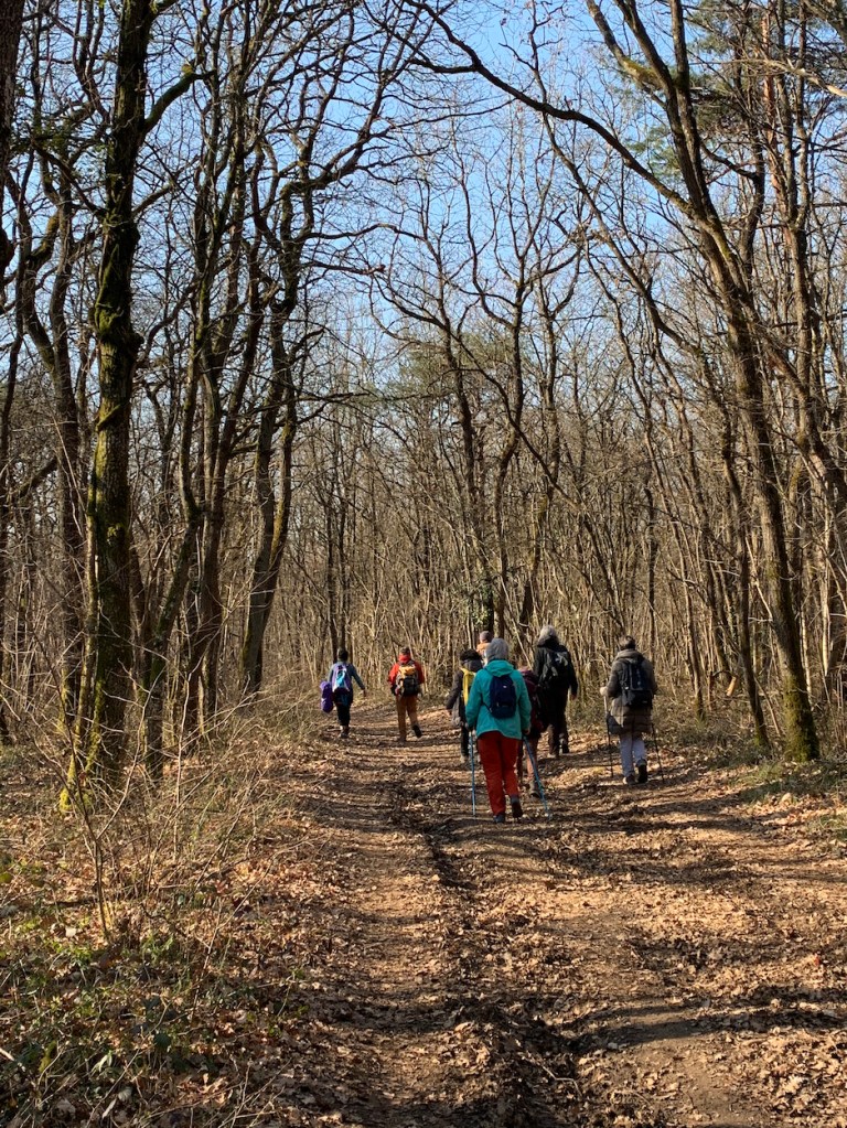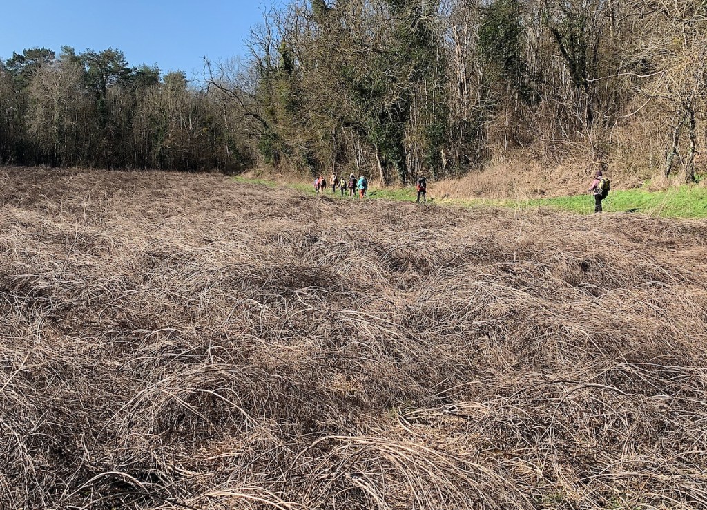 La Covid a divisé l’équipe en deux groupes de 10..12 , leur distanciation s’étale sur ces grands espaces encore vierges de cultures ou seules les betteraves pointent déjà leurs fannes . Le vent glacial des semaines précédentes s’est calmé et le soleil de mars réchauffe les coeurs et dépouillent au fil des kilomètres les randonneurs de leurs polaires ou autres doudounes. A mi-parcours, les deux groupes se retrouvent pour le pique-nique. C ‘est l’heure des retrouvailles de ripaille, des discussions joyeuses et bruyantes, une heure de halte où le niveau des décibels et des verres s’affole. In Vino veritas , lorsqu’il trouble la sieste des partisans du silence. Distanciation imposée ou socialisation volontaire des randonneurs, ou mettre le curseur entre le bavardage incessant des uns et la quête de repos des autres ? Telle est la problématique de la randonnée en groupe, un sujet sur lequel je me suis penché lors d’un précédent post (lire l’article) .