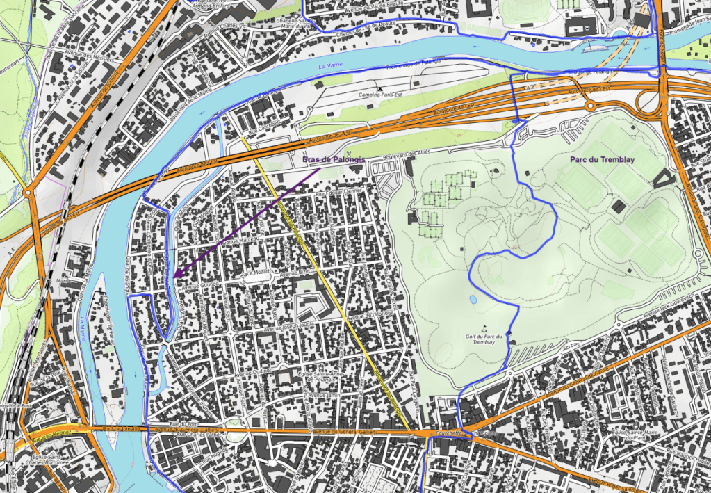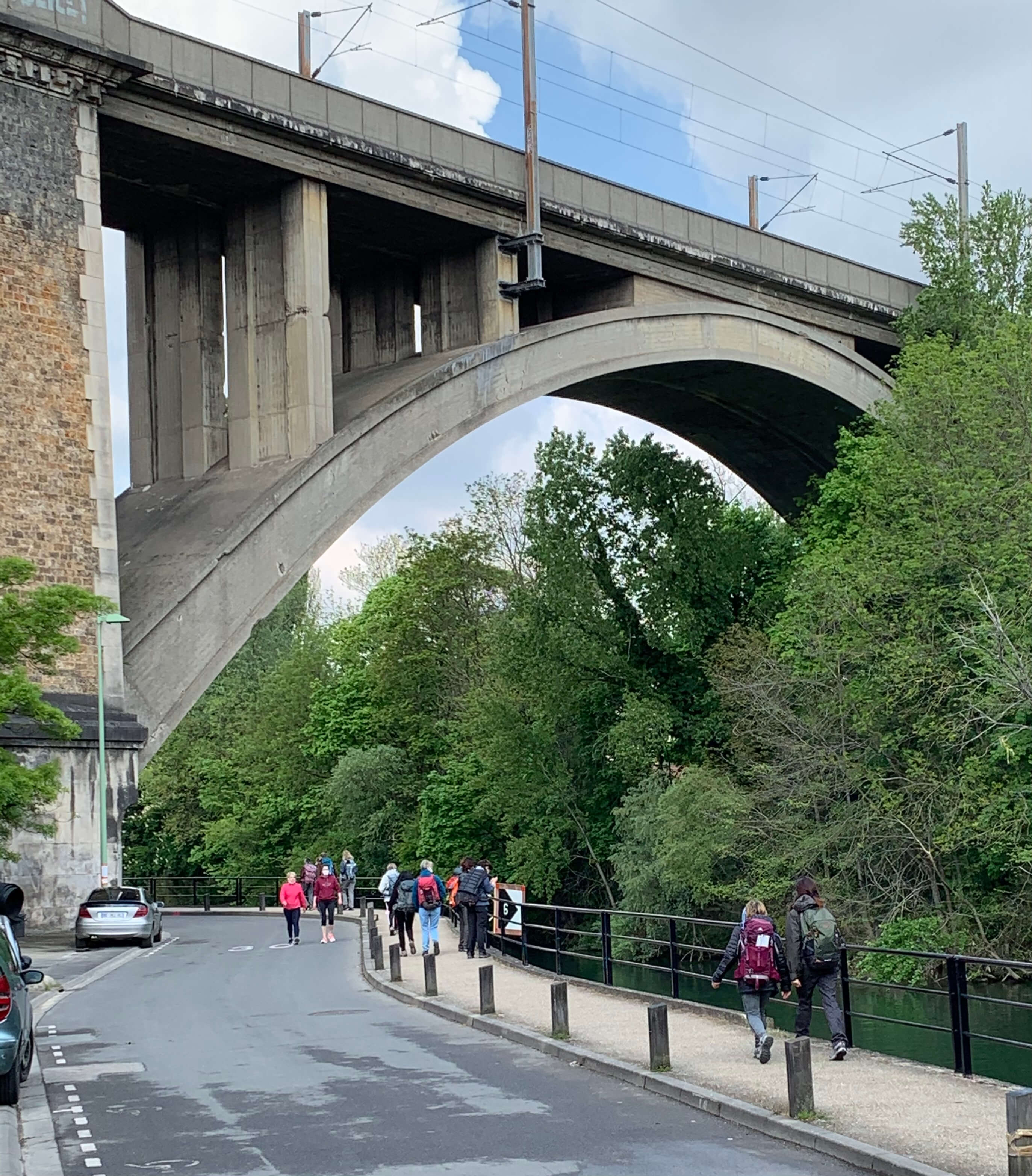 Cette randonnée proposée par dame Geneviève, notre guide du jour, partait de la gare RER A de Neuilly-Plaisance. Ce premier franchissement de la Marne emprunta un passage sous le pont monstrueux de béton du train. La rive gauche se présente désormais comme une belle allée verdoyante dominée par une piste cyclable que se partagent deux roues et joggers . Le parcours suit ainsi le cours de l’affluent en passant par Le Perreux, Bry, Joinville-le-Pont et Nogent-sur-Marne. Tout au long de cet itinéraire de nombreux panneaux d’informations joliment illustrés retracent l’histoire de ces ports qui ravitaillaient alors la capitale.