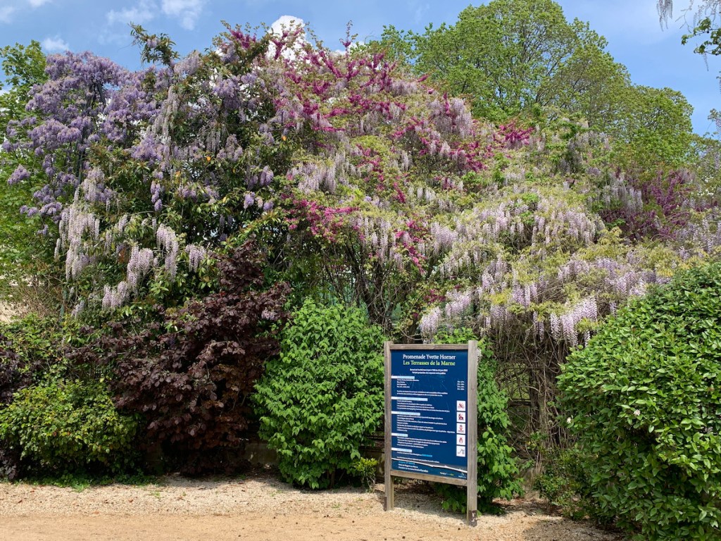 L’entrée dans le Bois de Vincennes débuta par la visite du Jardin d’Agronomie Tropicale de 4,5 ha ouvert au public créé à la fin du XIXe siècle pour accroître la production de l’agriculture dans les colonies françaises. Séquence émotion pour nos randonneuses, comme Maryvonne d’origine laotienne ou nos deux perles de l’océan indien : Marie-Françoise de la Réunion et Nassim la mauricienne ! Les derniers kilomètres dans l’espace boisé passèrent par le lac des Minimes très populeux pour s’achever au Métro Château de Vincennes. Belle balade printanière de « proximité » .