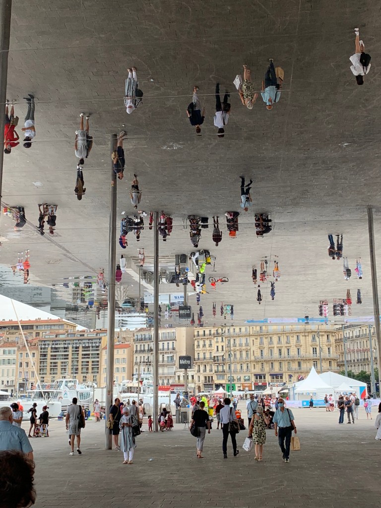 Si l’expo permanente est fort intéressante, j ‘avoue que les expos temporaires proposées ne m’ont jamais vraiment passionné depuis que je m’y rends et que j’ai encore du mal à m’y orienté. Reste que l’architecture du MUCEM est unique et m’interpelle toujours, avec sa dentelle de béton et son labyrinthe de fortifications. Après avoir errer sur les chemins de ronde et dans les diverses salles d’expo, je remonte les quais du port .