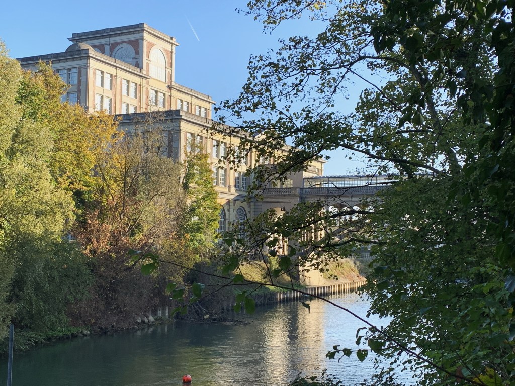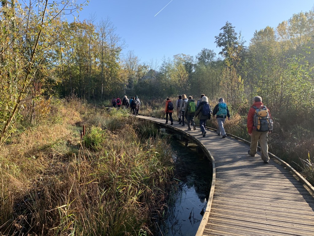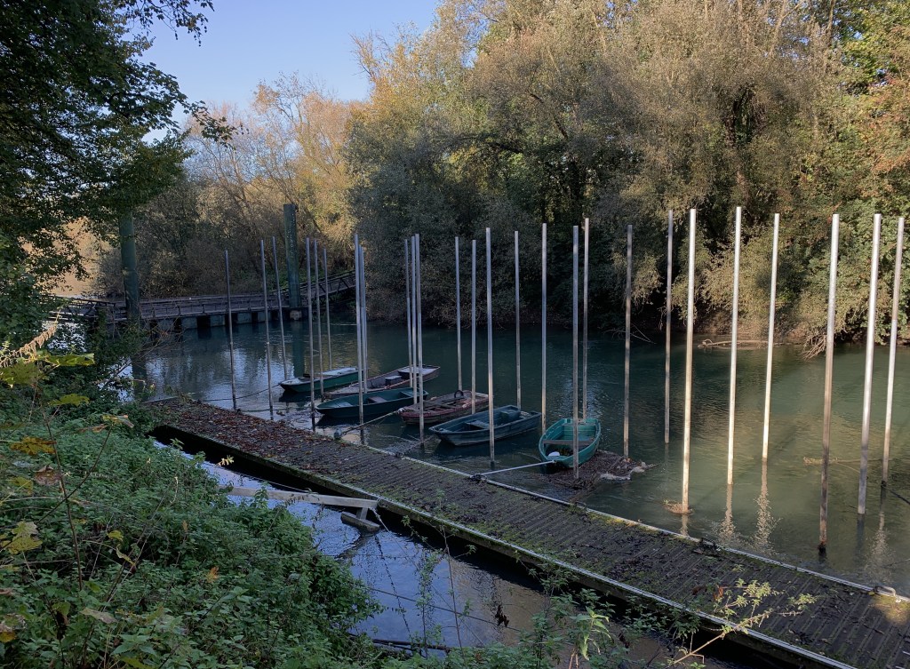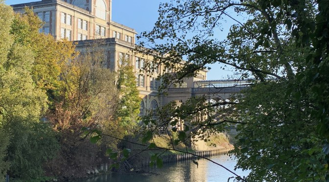 Cette belle balade péri urbaine de 22 km illustre parfaitement les travaux entrepris dans la région pour conserver ce cadre verdoyant . Les bords de Marne (et ceux de la Seine) font l’objet d’une réhabilitation constante pour être rendus aux piétons et aux vélos. Désormais on peut remonter la Marne sur des kilomètres et découvrir ses nombreuses îles , le barrage de Noisiel, le fameux moulin de Douvres, et sa multitude d’étangs où fleurissent clubs et bases nautiques . Après avoir longé la rivière et contourné l’Ile aux loisirs de Vaires-Torcy, le groupe a posé son pique-nique sur une pelouse de la station de pompage. Un beau soleil d’automne illuminait des étangs improbables perdus entre les lotissements, donnant à cette banlieue des airs de campagne. Ce fut aussi l’occasion de replonger dans l’histoire du tissu industriel important qui entourait jadis la capitale avec notamment un passage par la Cité ouvrière de Noisiel.