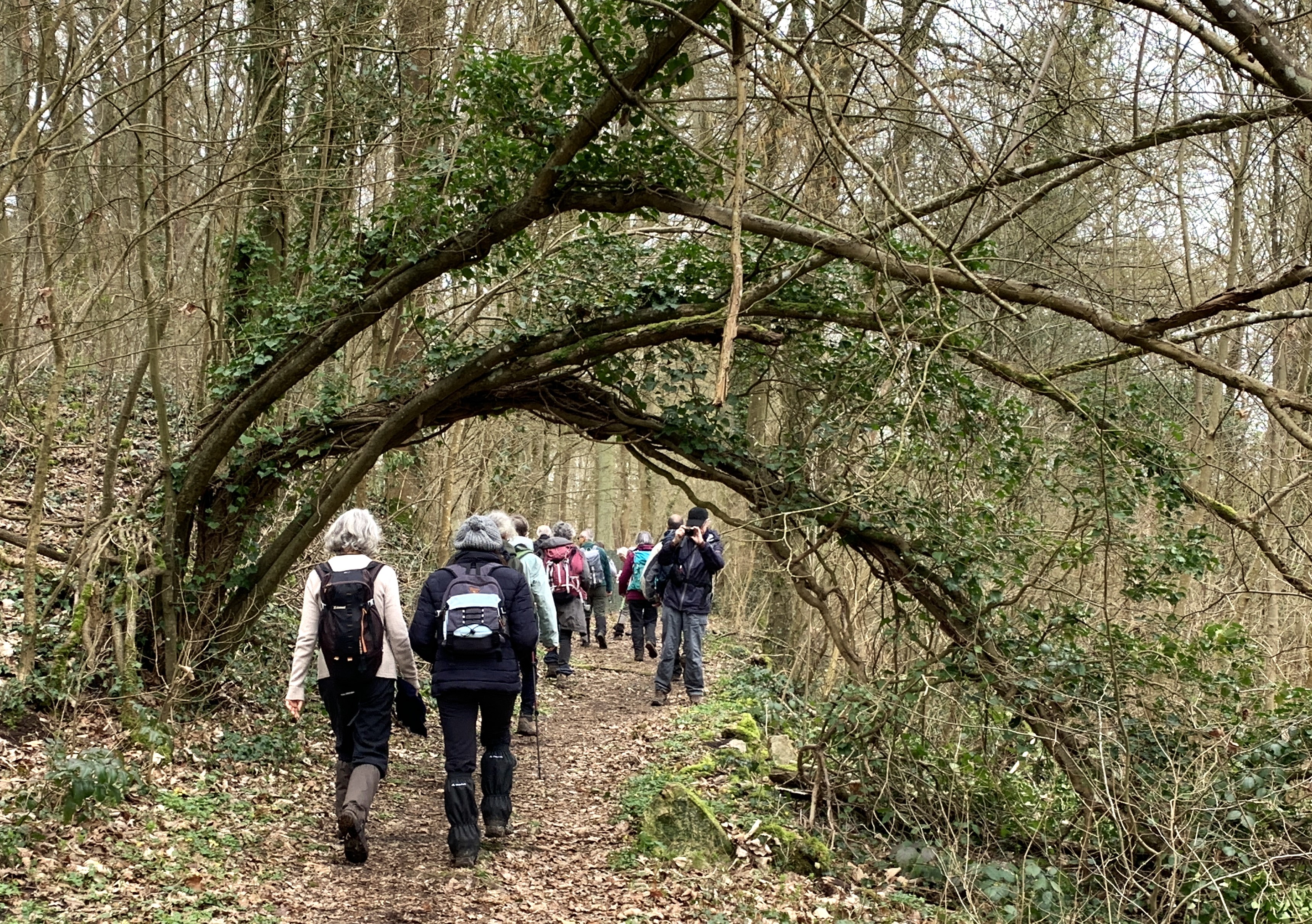 Simple bon sens. Cette boucle de 24 km se faufile le long des bosquets sur les chemins parfois creusés par les engins agricoles en repos dominical ce jour là. Les plaines betteravières ou de céréales ne vont pas tarder à révéler leur identités et repeindre le décor de leur feuillage tout neuf . Un soleil pâle hésite de longs moments à sortir des nuages puis soudain éclaire les pâturages. Un indicible air de printemps envahit l’atmosphère et les cœurs. Le vent est tombé et les randonneurs se dépouillent un à un de leurs oripeaux d’hiver au fil des lieues qui défilent. Passé 13h00, ils s’assoient sur les bords endigués de la Drouette pour engloutir un pique-nique mérité . (Ils sont partis de Montparnasse très tôt et les ventres crient famine).