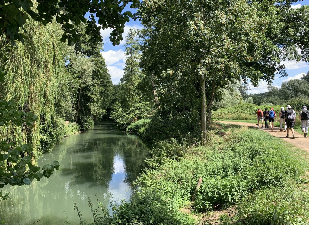 Cette région de Seine-et-Marne très vallonnée offre une belle alternance aux marcheurs, entre longues traversées sous le soleil et zones boisées . L’idéal est de s’y rendre en juin , juste avant les moissons quand le vent doux crée des vagues dans les blés tout dorés, spectacle dont je ne me lasse pas. En cette fin juillet, les faucheuses nous ont hélas devancé mais la forêt invite les randonneurs sur ses sentiers ombragés qui plongent parfois vers de petits cours d’eau. Nous sommes à une heure de la capitale seulement et le calme de la campagne ravit le visiteur parisien en quête chronique de quiétude.