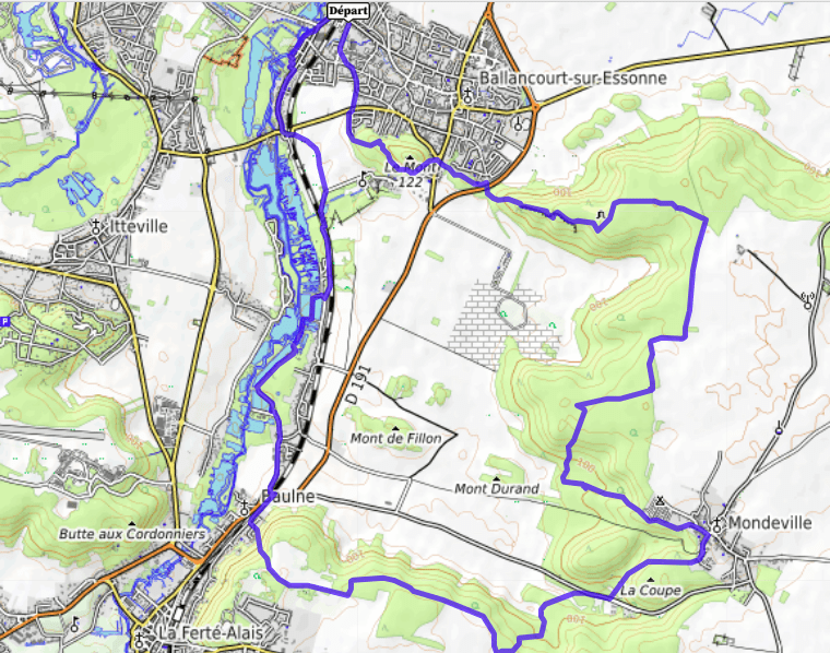 L’Essonnes (91) reste toujours un beau terrain de jeu pour le randonneur parisien. Voici une boucle de 22 km avec quelques dénivelés depuis la gare de Ballancourt (RER D) . L’itinéraire suit une large bande boisée jusqu’à la Ferté-Alais. Il passe par quelques plaines agricoles pour emprunter le GR11 au sud, puis remonte par les étangs Saint-Blaise et ses cabanes d’été. On retrouve sur une portion du parcours le terrain typique de la forêt de Fontainebleau avec ses rochers et son sol sablonneux . Ce parcours peut devenir moins praticable lors de pluie.