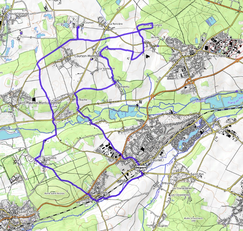 Randonnée en Essonne : boucle facile de 19 km. Trace gpx