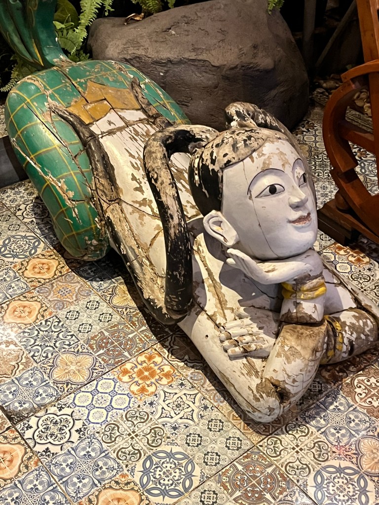 J’y reste deux bonnes heures, essayant tant bien mal de comprendre son histoire et plus encore de le photographier sous les meilleurs angles sans avoir une famille chinoise ou un couple d’amoureux du selfie dans le champ. Autrement dit, un exploit. J’enchaîne au National Muséum , une pure merveille, un endroit passionnant.. et reposant. Le parcours de la présentation des œuvres est limpide et d’une grande beauté d’éclairage. Cette immersion dans l’histoire, l’art et les traditions de la Thaïlande est incontournable pour le voyageur curieux.