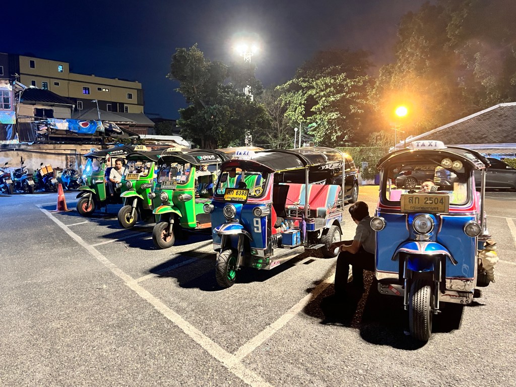 Atterrissage à l’aéroport international Survarnabhumi de Bangkok, je m’incruste au flot de touristes un peu hagards qui convergent vers la douane en possession du QR code TDAC (Thailand Digital Arrival Card) pour obtenir mon visa (de 30 jours désormais). J’ai réservé un petit hôtel pour trois jours dans le quartier historique. Décalqué par le vol, je préfère m’y rendre en taxi.. plus précisément en taxi meter ! Cela évite ici les malentendus. Un dispatcheur situé sur le boulevard m’oriente vers un numéro de file, me prélève la somme exacte de la course (780 B.) et me donne l’immatriculation du taco. C’est carré et efficace.