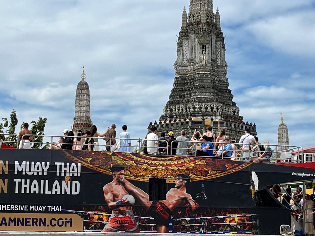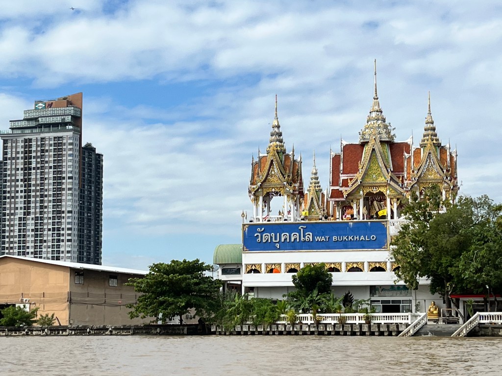 On range la doudoune, il fait 26 °C. Que le spectacle commence ! La ville est immense, parcourue de bretelles d’autoroutes qui planent sur 12 millions d’âmes. Les buildings de verre et d’acier émergent au milieu des tours d’habitations de cinquante étages et d’une mer de petits immeubles ou de maisons enchevêtrées. Les panneaux de publicité sont ici à la démesure de cette ruche. D’immenses affiches de dix mètres sur vingt vantent la cosmétique, les banques, les bagnoles et, pour l’heure, les SEA Games 2025. Les JO du Sud-Est asiatique se disputent l’espace avec les portraits de la défunte reine et du roi. Patrie, monarchie et religion, les trois piliers de la Thaïlande s’inscrivent partout ici en lettres d’or. Après une nuit réparatrice, je pars en exploration dans le vieux quartier blotti dans une anse du fleuve Chao Phraya.