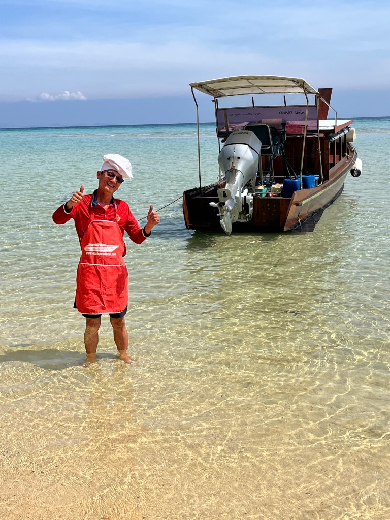 Pas un feu rouge, des journées qui commencent tôt par un petit déj sur la terrasse de leur maison posée sur l’eau, et se terminent par le coucher du soleil selon un programme journalier à géométrie variable. Baignades, tapas, noix de coco, dégustations des spécialités locales chez Ben, un chef français, sans oublier des parties de backgammon avec les expats du coin. Le séjour s’est terminé par une sortie en mer, sur un bateau privé et un pique-nique avec cuisinier sur une île déserte et secrète ! N’insistez pas, vous ne saurez RIEN, à part que le thermomètre de mon Apple Watch afficha ce jour-là une température de l’eau à 31 degrés !!