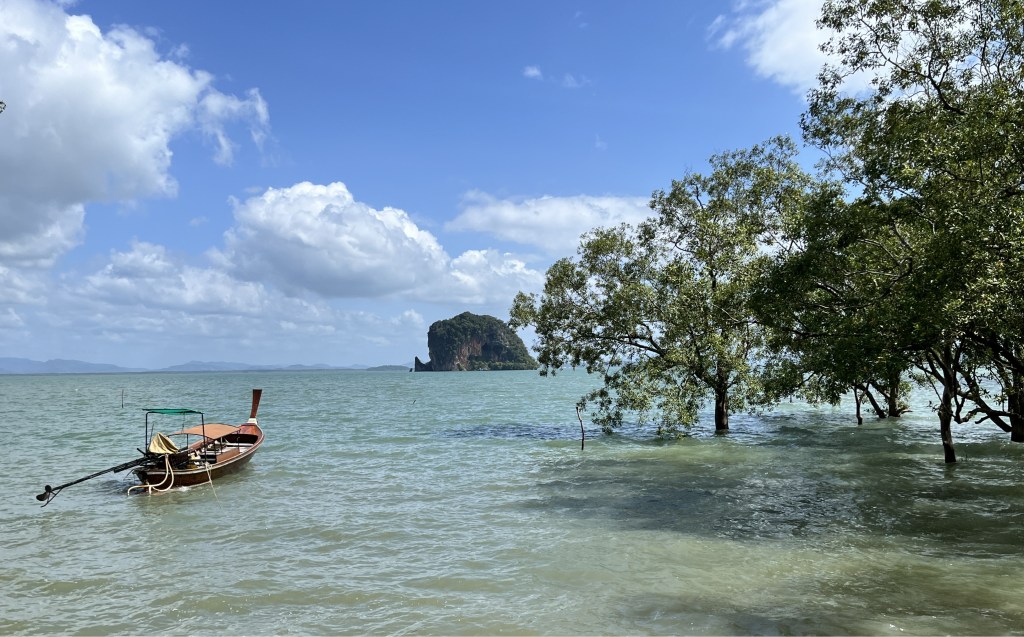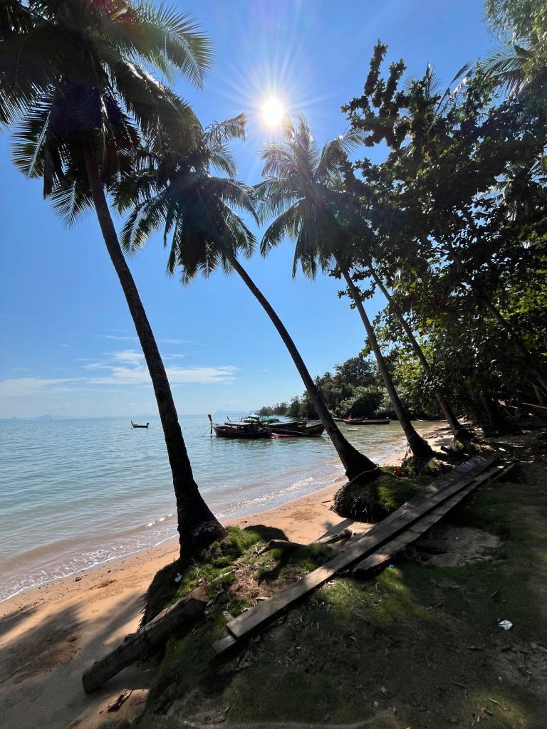 Après une autre nuit à Bangkok en transit, je prends un vol vers Krabi, de quoi ruiner mon bilan carbone jusqu’à la fin de la décennie. Il existe plusieurs solutions pour rejoindre l’île de Ko Lanta : le taxi (2500 baths) ou le minibus (450 baths) voire le bateau. Les agences présentes dans le hall de l’aéroport pratiquent toutes le même tarif. Bon, vaut mieux être patient, car le trajet peut durer de trois à quatre heures selon les déposes des touristes dans les divers resorts qui s’étalent sur les 30 km de la côte ouest et les livraisons du chauffeur.