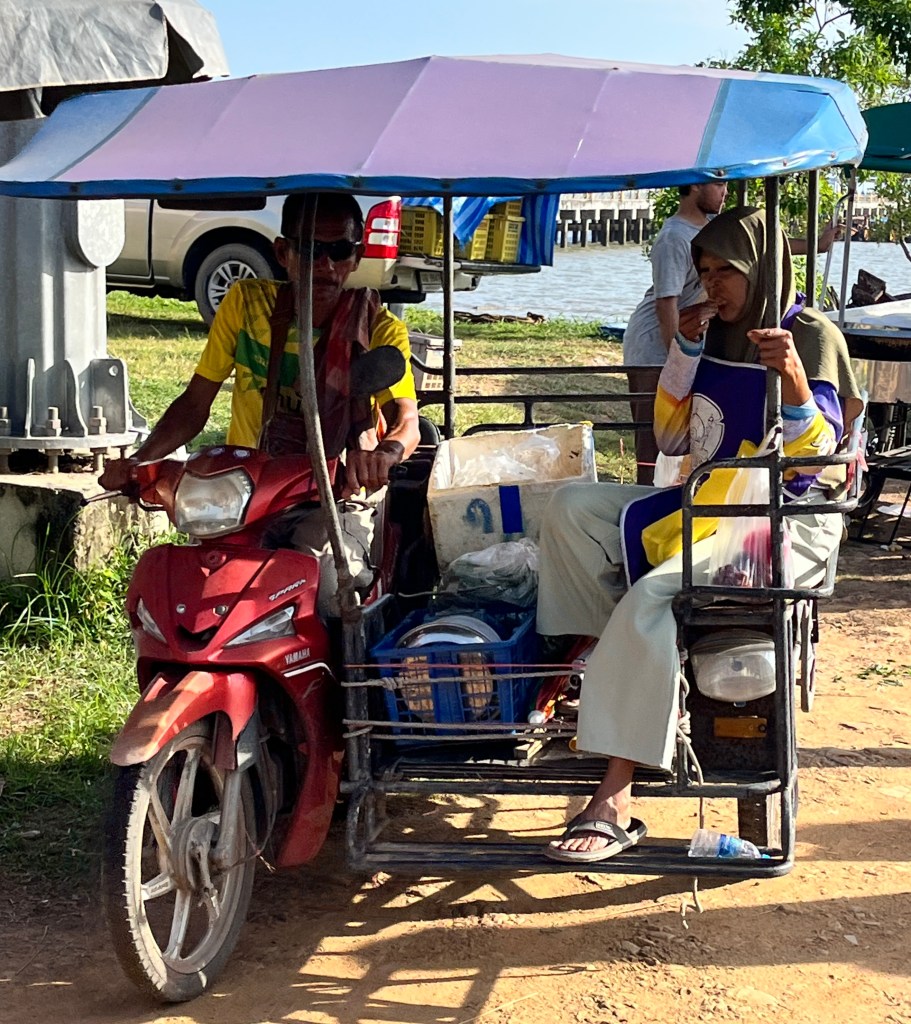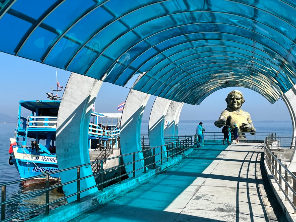J’ai mis un moment pour comprendre qu’il fallait atterrir à l’aéroport de Pattaya-Reyong puis prendre un taxi jusqu’à l’embarcadère de Ban Phé distant de 60 km et enfin embarquer que un ferry ou un speed boat. L’App 12GO, m’embrouilla dans de multiples forfaits minibus + speeboat incompréhensibles. Fatigué, j’appelais directement un prestataire de taxi qui m’expliqua tout en me proposant un tarif correct depuis l’aéroport. La traversée par une mer formée est assez rock’n’roll, mais heureusement ne dure qu’une demi-heure. Les taxi-collectifs (verts !) attendent le touriste au débarcadère comme l’attendent les autorités de cette île classée « Parc National » pour l’alléger de 200 bath.