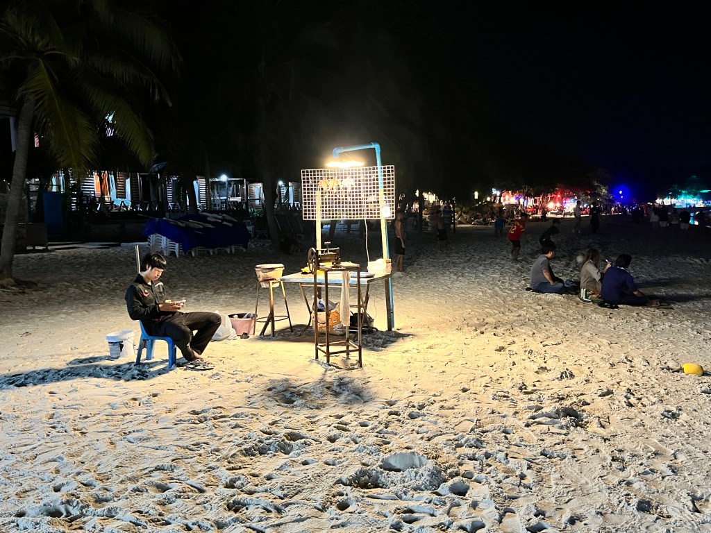Ko Samet reste une destination familiale d’une grande quiétude avec de jolies plages à peine troublées par la ronde des jet skis près du village. (Remarque : le touriste est toujours collé par pilote thaï et ne fait guère plus que des ronds dans l’eau !). Il fait bon y dîner le soir, les pieds dans le sable, (y fumer discrètement) ou prendre un dernier verre dans l’unique rue commerçante. (Pour info, le cannabis est en vente libre et encadrée en Thaïlande. Néanmoins, il est interdit de fumer dans les lieux publics) . En résumé, Ko Samet est une sorte d’immense club de vacances bien tranquille. Les Chinois s’y retrouvent en groupe pour y faire une fête bon enfant, entre eux. Franche rigolade collective, selfies et bain habillé ou sous ombrelles pour ces dames qui craignent plus que tout le soleil . (Un teint hâlé est réservé aux travailleuses des champs ! ). Les hôtels proposent souvent des tarifs avantageux pour rejoindre Bangkok en minibus .