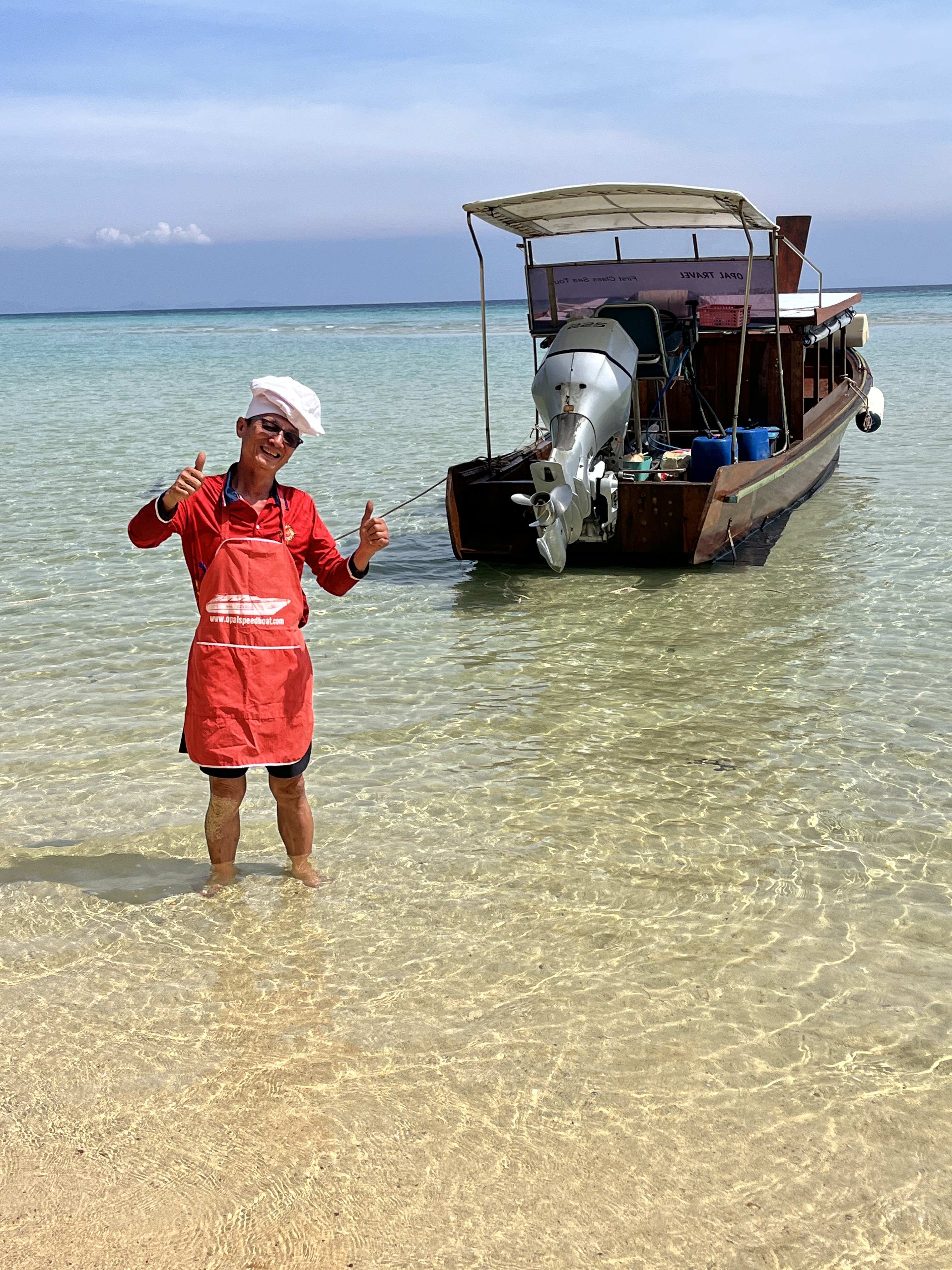 Pas un feu rouge, des journées qui commencent tôt par un petit déj sur la terrasse de leur maison posée sur l’eau, et se terminent par le coucher du soleil selon un programme journalier à géométrie variable. Baignades, tapas, noix de coco, dégustations des spécialités locales chez Ben, un chef français, sans oublier des parties de backgammon avec les expats du coin. Le séjour s’est terminé par une sortie en mer, sur un bateau privé et un pique-nique avec cuisinier sur une île déserte et secrète ! N’insistez pas, vous ne saurez RIEN, à part que le thermomètre de mon Apple Watch afficha ce jour-là une température de l’eau à 31 degrés !!
