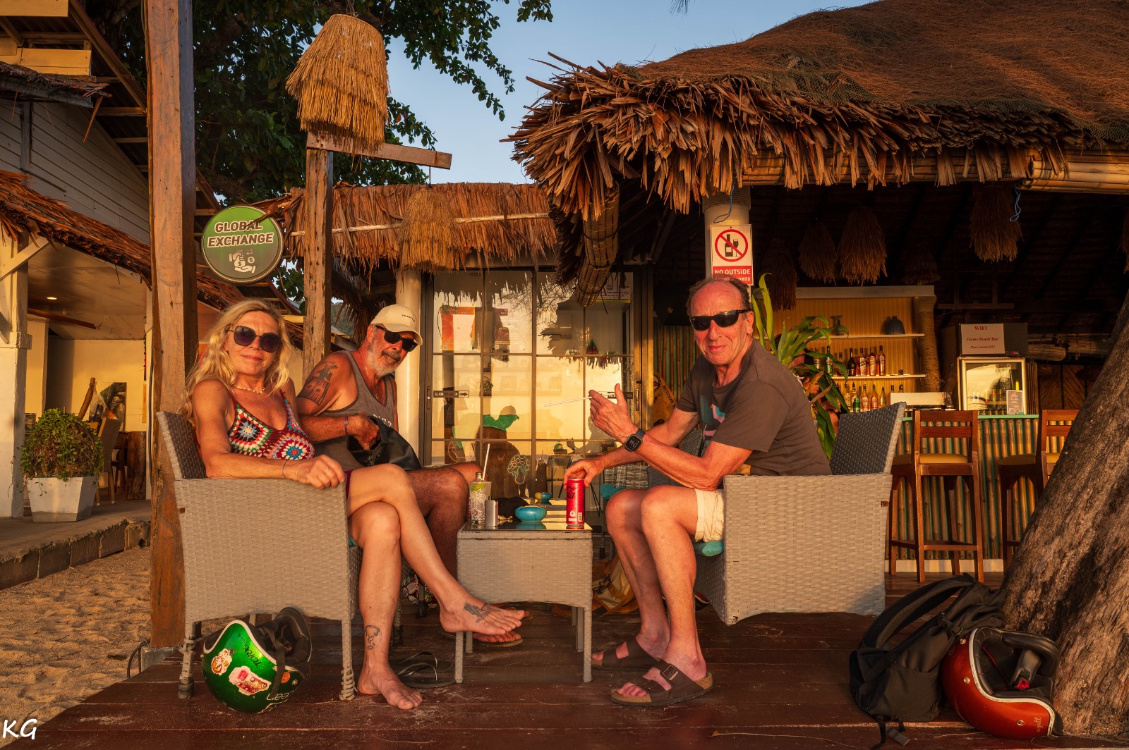 Ko Samet reste une destination familiale d’une grande quiétude avec de jolies plages à peine troublées par la ronde des jet skis près du village. (Remarque : le touriste est toujours collé par pilote thaï et ne fait guère plus que des ronds dans l’eau !). Il fait bon y dîner le soir, les pieds dans le sable, (y fumer discrètement) ou prendre un dernier verre dans l’unique rue commerçante. (Pour info, le cannabis est en vente libre et encadrée en Thaïlande. Néanmoins, il est interdit de fumer dans les lieux publics) . En résumé, Ko Samet est une sorte d’immense club de vacances bien tranquille. Les Chinois s’y retrouvent en groupe pour y faire une fête bon enfant, entre eux. Franche rigolade collective, selfies et bain habillé ou sous ombrelles pour ces dames qui craignent plus que tout le soleil . (Un teint hâlé est réservé aux travailleuses des champs ! ). Les hôtels proposent souvent des tarifs avantageux pour rejoindre Bangkok en minibus .