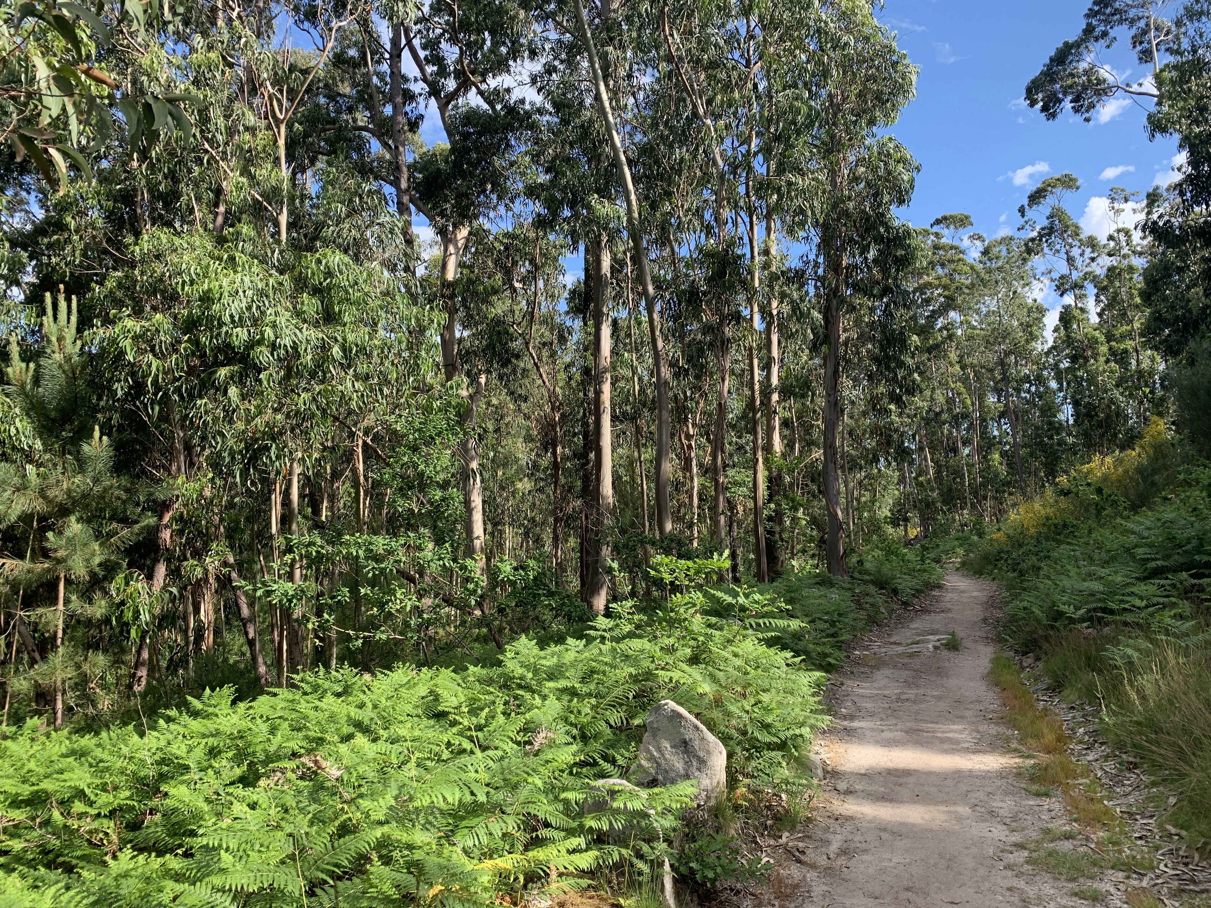J’ai ainsi emprunté à Boimorto une diagonale rectiligne, déserte, de 8 km pur bitume entre les forêts d’eucalyptus, sans le moindre café. Dépité, j’ai même tenté de faire du stop, en vain. Enfin, cette météo pluvieuse rend parfois les chemins presque impraticables lorsque les engins forestiers les défoncent. Le marcheur évolue quasiment dans un bourbier de glaise. Un enfer. Comme tous les caminos, le Norte est tracé de part et d’autre de grands axes routiers. Afin d’éviter tant que ce peut le bitume et le danger des voitures, les baliseurs coupent les grandes boucles routières par des descentes en fond de vallons et les remontées. La répétition de ces montagnes russes est particulièrement épuisante.