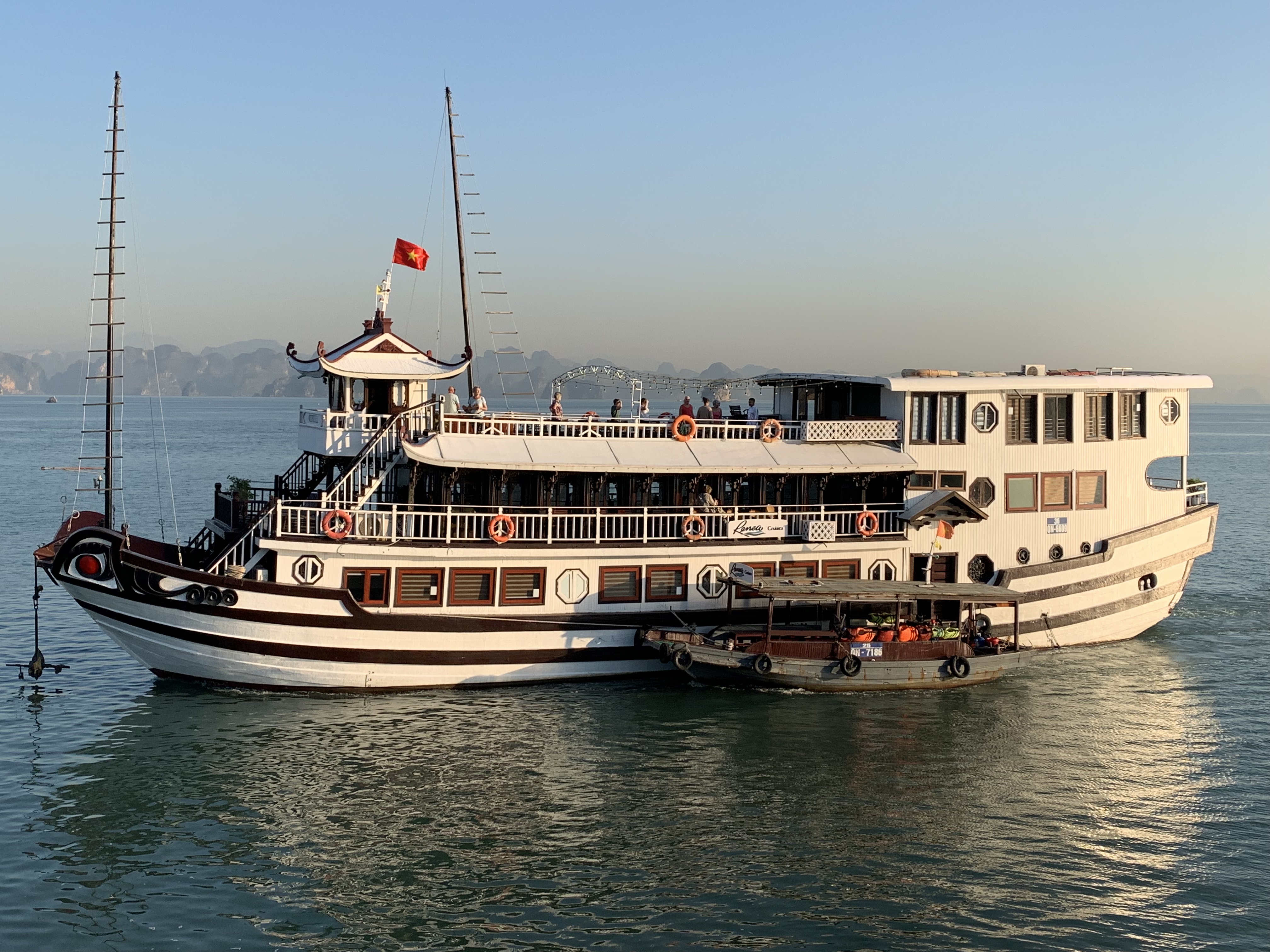 Des bateaux-bar les invitent à boire un coup à bord et des barques les accostent pour une dégustation de soupe… douteuse m’avoue Tanh. Pourquoi ce pseudo Tanh ? Mon guide âgé de 78 ans, capitaine dans l’armée, a subit la chute de Saïgon en 1973, il a purgé une année dans un camp de rééducation communiste, il a tenté une évasion par la mer (boat people) organisée par « un privé » , il a échoué faute à une panne de moteur . Il est retourné dans un camp, etc.. Dans le climat politique actuel, cinquante ans plus tard, le récit de son histoire est encore aujourd’hui trop risqué pour être révéler sous son vrai nom.