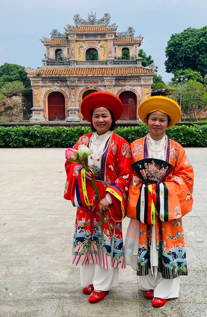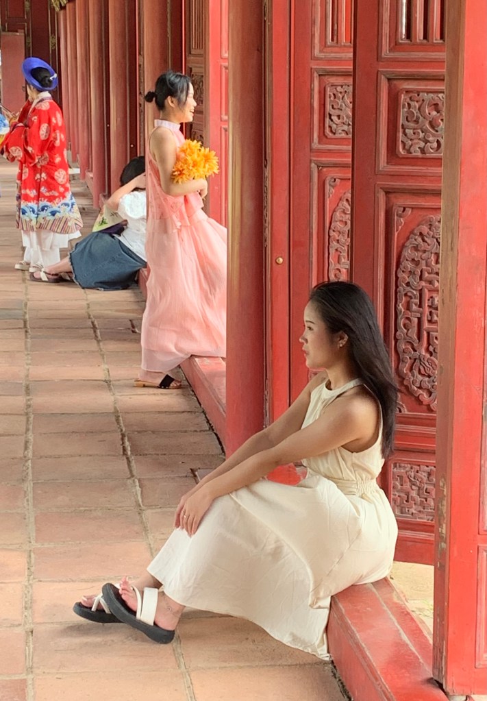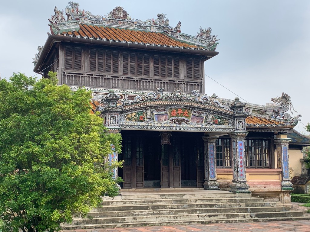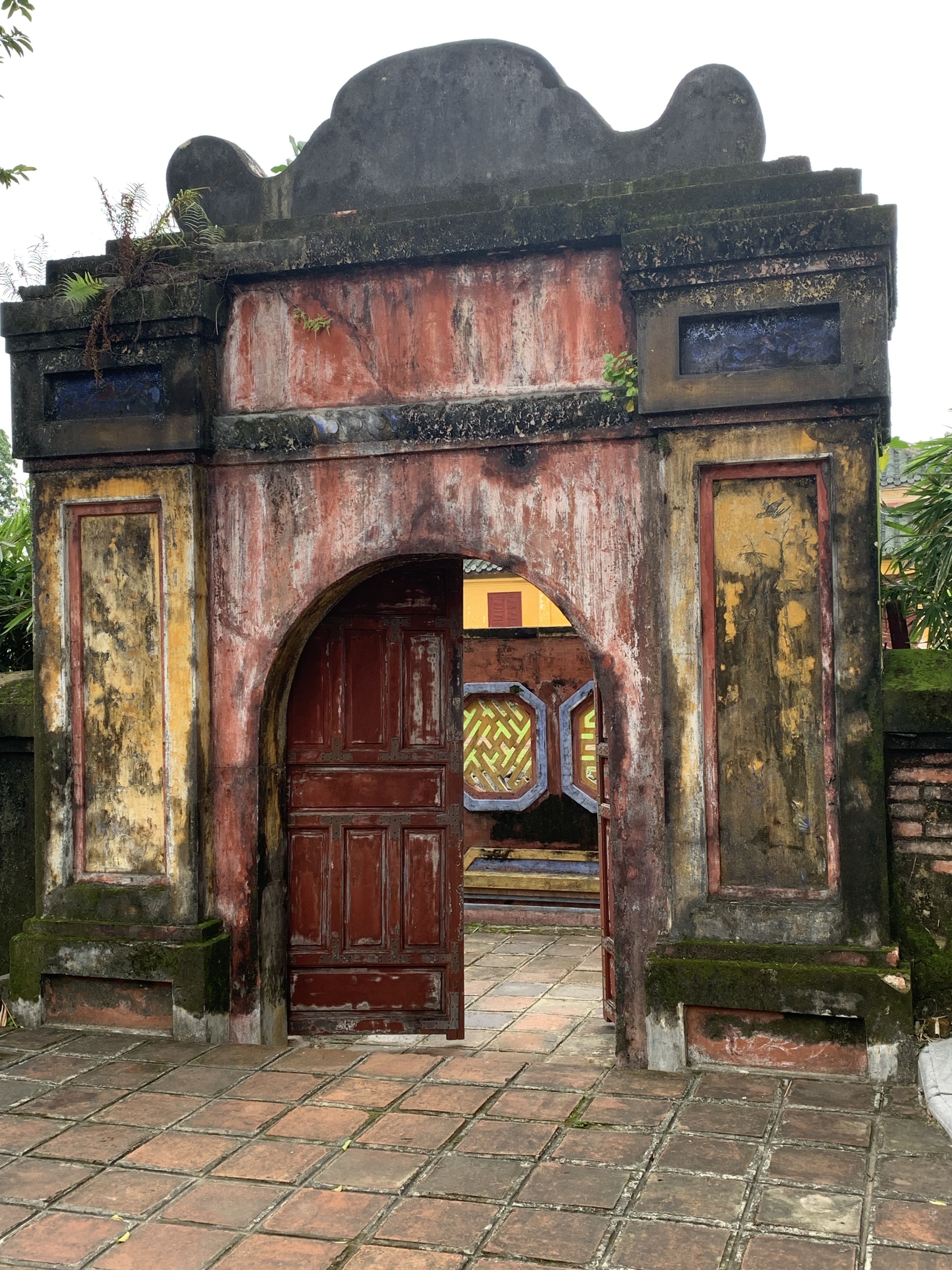 Dopé au Doliprane, poussé par la curiosité, j’emprunte un vélo et pars en repérage à Hué. Après la frénésie d’Hanoï , je savoure un calme divin, réparateur. Je roule serein le long des canaux, sur les trottoirs . Je reviens dans le quartier ancien le lendemain, cette fois à pied. Les conducteurs de pousse-pousse me racolent sans trop d’insistance , je cède à une marchande de mangue après un marchandage courtois . j’ai décidé de visiter la Cité Impériale assez tôt pour échapper à la chaleur croissante et aux premières vagues de touristes . Le plan du site est bien fait et les itinéraires balisés me conduisent durant trois heures de pavillon en pavillon, de jardin en jardin .