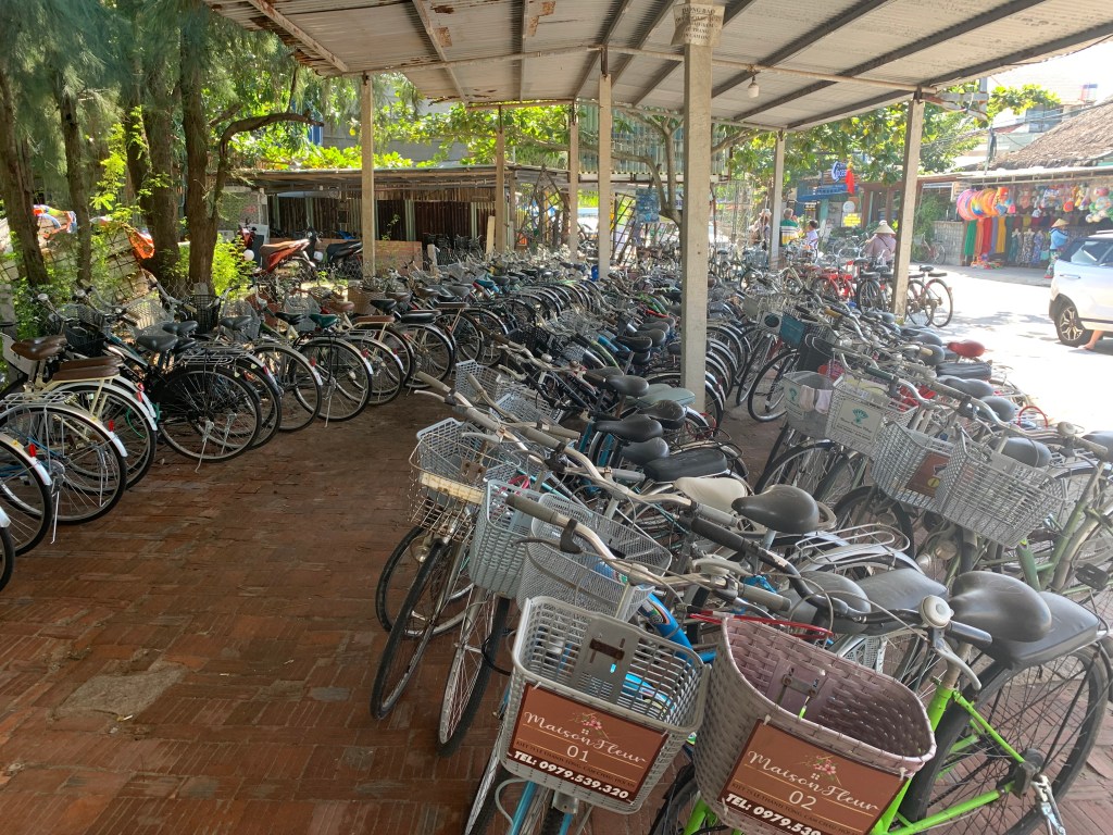 Dès mon installation, les averses reprennent, je reste à proximité pour déjeuner. Repos, détente, je reprends du poil de la bête et affiche une bonne forme le lendemain matin . Comme tous les hôtels, le mien met à disposition des vélos pour se balader et aller à la plage . La plage d’An Anh s’étale sur plusieurs kilomètres. Des dizaines de bars et restaurants bordent sur trois rues parallèles cette bande de sable fin dans un décor de rêve composé de cocotiers, bougainvilliers, bananiers etc.. Il est tôt, je confie ma monture au parking à vélos et pars à la recherche du bar Soul kitchen tenu pas la fille d’un ami à Paris. Des concerts y sont organisés chaque soir en saison. Fruits pressés, collation, vient l’heure du farniente pour cette journée exceptionnellement ensoleillée pendant la mousson. Sur le sable, les petites plagistes agitent les bras comme des sémaphores pour bloquer les clients au pied de leur bar sur leur transats car la concurrence est rude sous les tropiques ! Matelas, parasol, service sur place de boissons fraîches et menus à la carte , une journée comme celle-ci vous coûtera une dizaine d’euros tout compris ! Je vais rester presque trois jours à Hoi An, le temps de la parcourir dans tous les sens mais aussi l’occasion vivre une rencontre inattendue dans un petit restaurant d’une rue adjacente choisi au pif.
