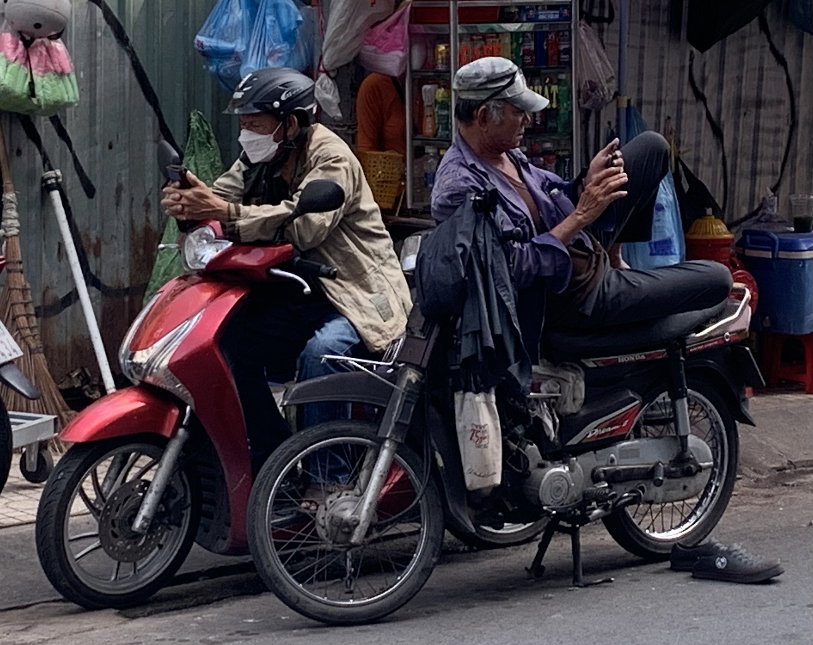 L’avion de Vietnam Airlines venant de Da Nang se pose à 16h30, pile à l’heure de pointe dans Saïgon. Autrement dit la circulation atteint son paroxisme d’embouteillage de deux roues et plus aucune règle de priorité n’est réellement respectée, sur certains trottoirs y compris ! Faudra que je redouble de prudence notamment dans les petites rues. Seuls les intersections aux des grandes artères équipées de feux gardent une certaine discipline.