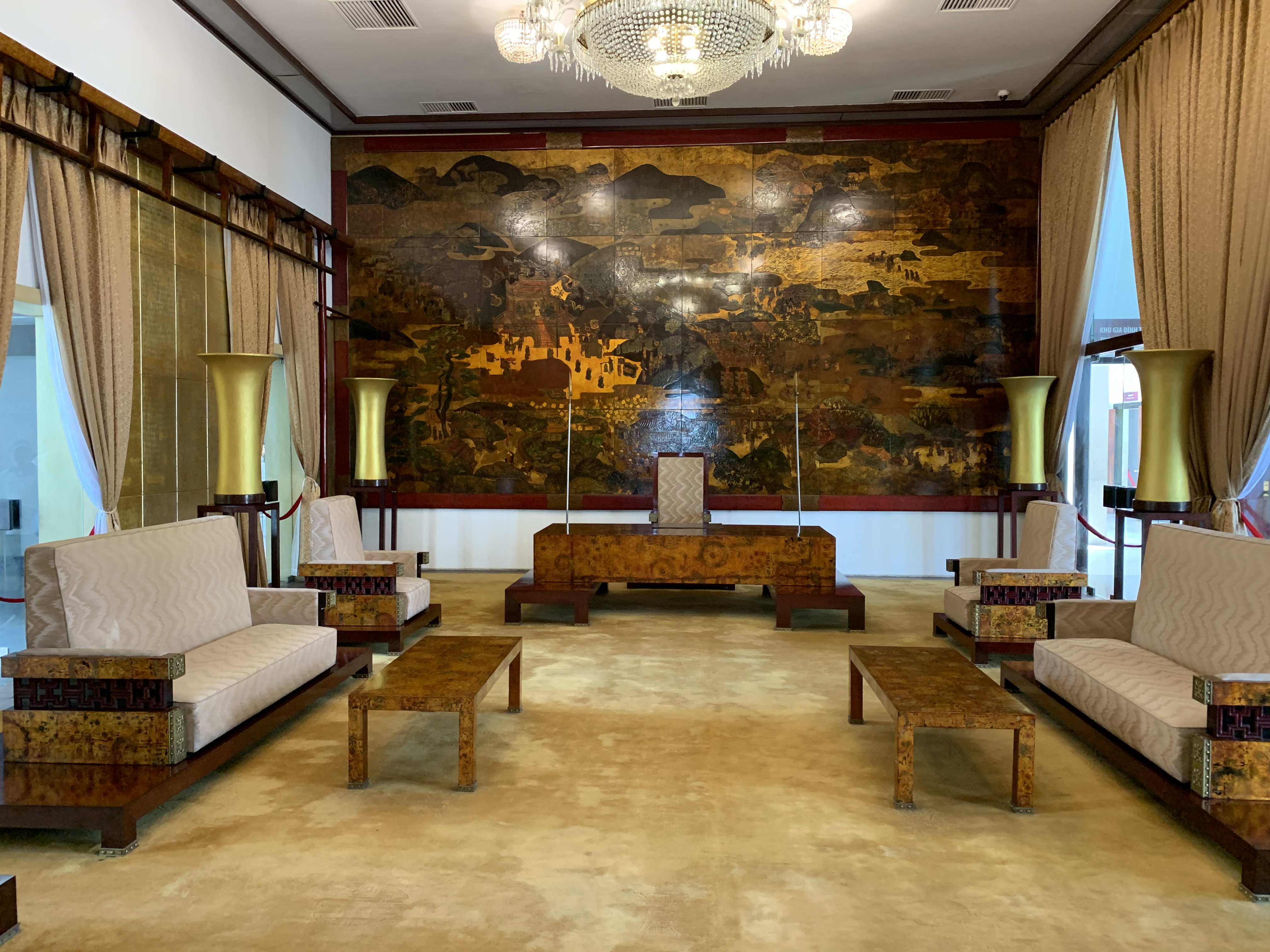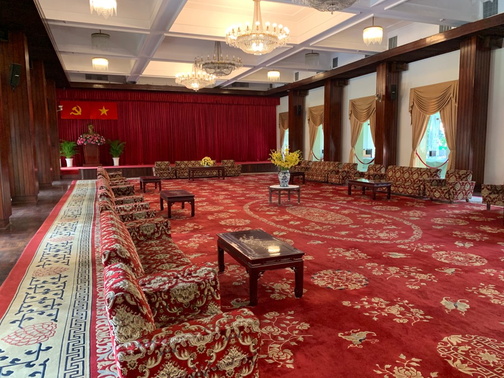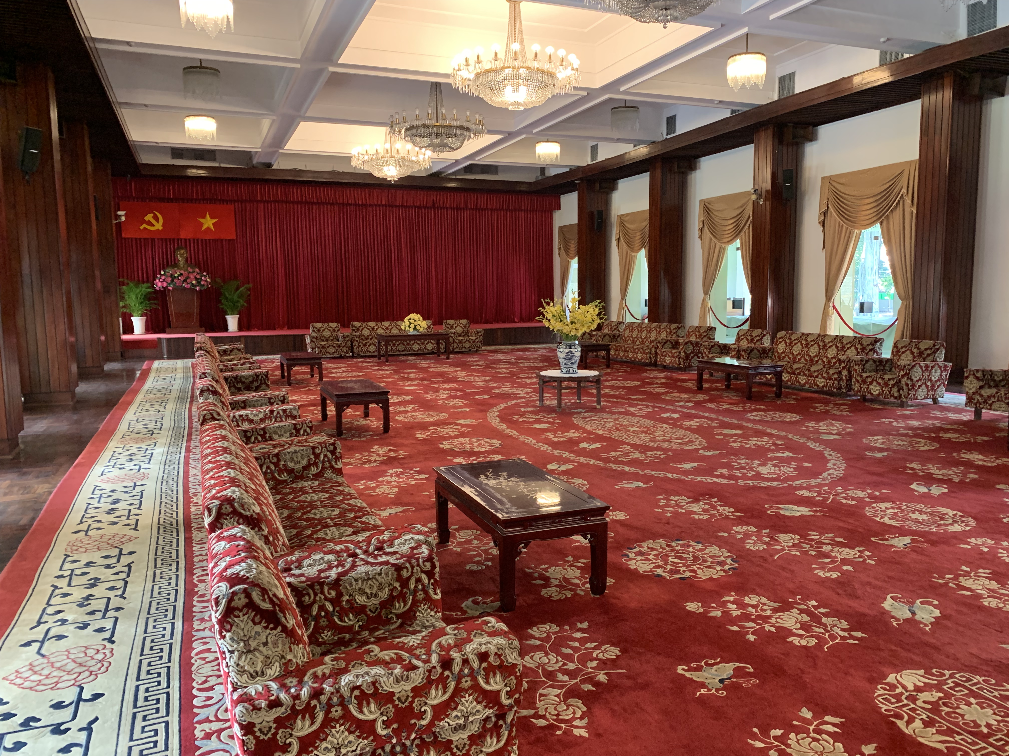 Retour dans la fourmillière de Saïgon, la température est montée de quelques degrés. C’est mon ultime journée au Vietnam et je pioche dans le guide du Routard afin d’y dénicher un site intéressant. La cathédrale Notre-Dame étant hélas en travaux, je me rabats sur le Palais de la Réunification. Vu de l’extérieur ce bâtiment plutôt moderne n’ a rien d’attrayant. L’architecture intérieure aux immenses salons et le mobilier de l’époque lui donnent une dimension solennelle. Ce palais présidentiel fait pourtant partie des hauts lieux historiques du Vietnam qui fut au cœur de la bataille qui marqua le chute de Saïgon en 1973.