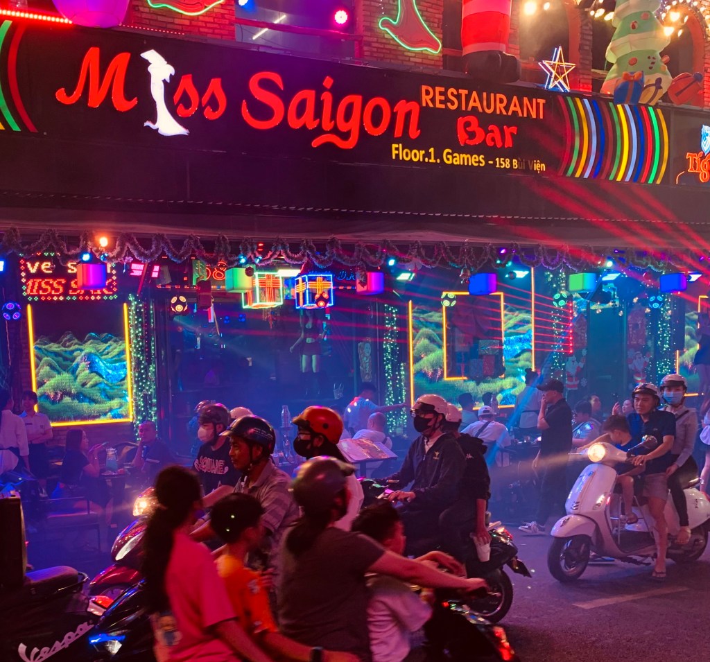 Bars, danseuses en terrasses, matchs de foot sur écrans géants, restaus en pagaille , le quartier hot de Saïgon dans le District 1