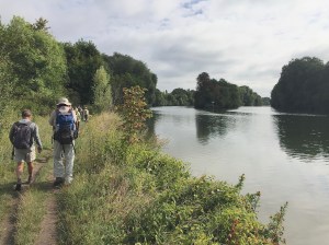 Paris s’est vidé de ses habitants, les touristes ont investi la Capitale soumise aux caprices d’un été alternant épisodes caniculaires et polaires. L’ile de France ouvre ses grandes espaces désertés aux randonneurs parigots. Notre copine Chantale nouvelle guide de Sport et Nature nous invite à découvrir la partie Est du Vexin au départ de la gare de L’Isle-Adam. La locale de St Leu a concocté une boucle de 24 km sur le papier. Nous en ferons 27, mais qu’importe, le parcours en valait la peine. La bonne idée fut de renoncer de commencer cette randonnée par  la forêt de l’Isle-Adam, tellement connue, mais de suivre l’Oise sur une longue boucle jusqu’à Champagne (sur Oise , of course ) et de traverser le Bois de la Tour du Lay en suivant notamment le GR1. Ce sentier qui encercle la région parisienne passe ici par Nesles-La-Vallée. Le charmant village nous accueille pour un pique-nique mérité sur la berge d’un canal verdoyant après 13 km menés à un bon rythme. Afin d’éviter un long passage dans la plaine, Chantal a choisi de descendre plein sud par un long goulet de verdure  ou s’enchaînent les Bois des Vignes, le Bois des Cocus (!), le Bois le Roi et qui se termine par la Côte de la Thibaude. Ce superbe chemin conduit à Auvers-sur-Oise, une destination beaucoup plus fréquentée ce dimanche. Si la présence de Van Gogh reste omniprésente bien sûr, le château, les terrasses des cafés et le calme des bords de l’Oise en font une idée de balade très accessible depuis Paris et passionnante. Une partie du groupe reprendra le train ici, le reste continuera en franchissant l’affluent de la Seine jusqu’à la gare de Mériel. C’est ici que Jean Gabin a grandi avant de devenir  l’immense acteur que l’on connaît. La ville lui a dédié un musée discret non loin du chemin de halage. Cet itinéraire ne présente pas de difficulté si ce n’est ses 27 km. Il permet de découvrir quelques perles du Vexin, un parc naturel classé vaste de 65.000 hectares regroupant 66 communes, une voie romaine sublime ainsi que des vestiges historiques remontant à 2500 ans avant J.C.  A parcourir sans modération.