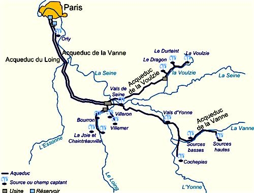 Un système complexe d’aqueducs pour alimenter Paris. Une large partie de voies est enterrée.