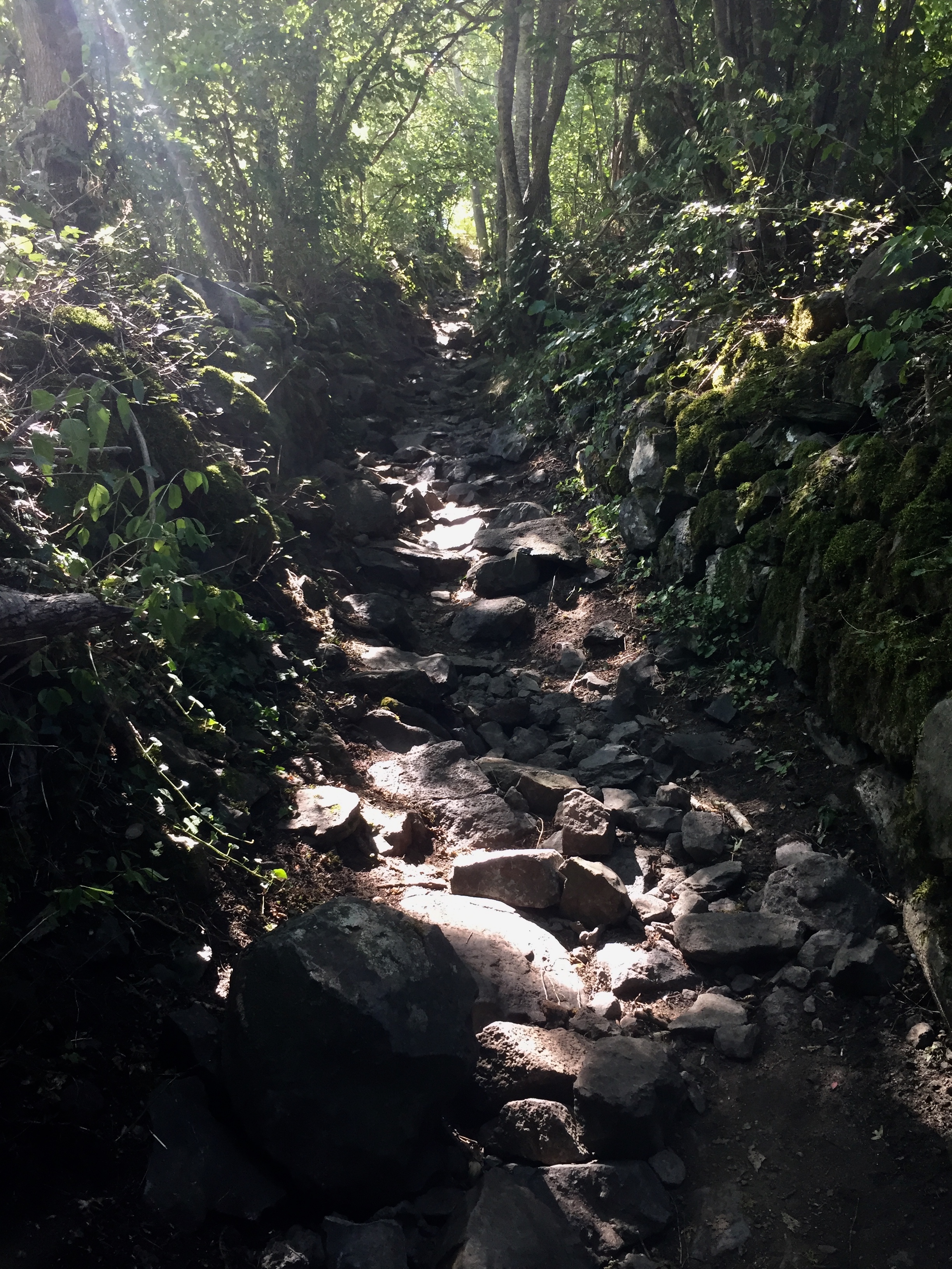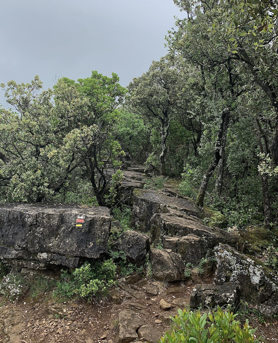 Pour ma part j’ai tenu à pousser ce GR70 jusqu’à Alès. Etait-ce une dernière bonne idée ? Hum.. Après plus de quinze kilomètres assez éreintant jusqu’à Mialet et la montée jusqu’à St Paul-la-Coste, le GR70 se termine pas des passages en escalade et une descente radicale sur un chemin glissant truffé de racines et de caillasses. Un vrai cadeau d’adieu de ce chemin exceptionnel , un grand classique de la randonnée en France.