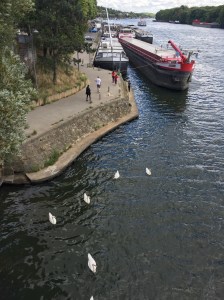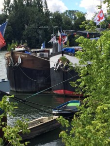 Un circuit thématique entraîne ici le randonneur sur la trace des peintres Impressionnistes dont Pissaro. Il fait dire que le paysage se prête à la rêverie, à un voyage au XIXe siècle , époque des bateaux-lavoirs, des barges en partance pour Rouen ou le Havre . Le fleuve serpente lentement dans son écrin. Au loin les usines du Val d’Oise replongent le visiteur dans le présent. Il faut presque trois heures pour atteindre le Port Saint-Nicolas de Conflans- St Honorine. Avec les années, la petite ville a pris une dimension touristique que j’ignorais. Les quais boueux de jadis ont été réaménagés en promenade où l’on se pause ou se délasse sur des transat de bois. Les péniches d’habitation fleuries bord à bord donnent une merveilleuse impression de quiétude voire de vacance. Les chantiers de naguère ont presque tous disparus, les berges ont ouvert leurs espaces aux restaurants dont les terrasses ombragées font désormais le bonheur des familles en balade ou des amoureux en quête de romantisme. Les affamés d’histoire ne manqueront pas d’aller visiter le Musée de la Batellerie.
