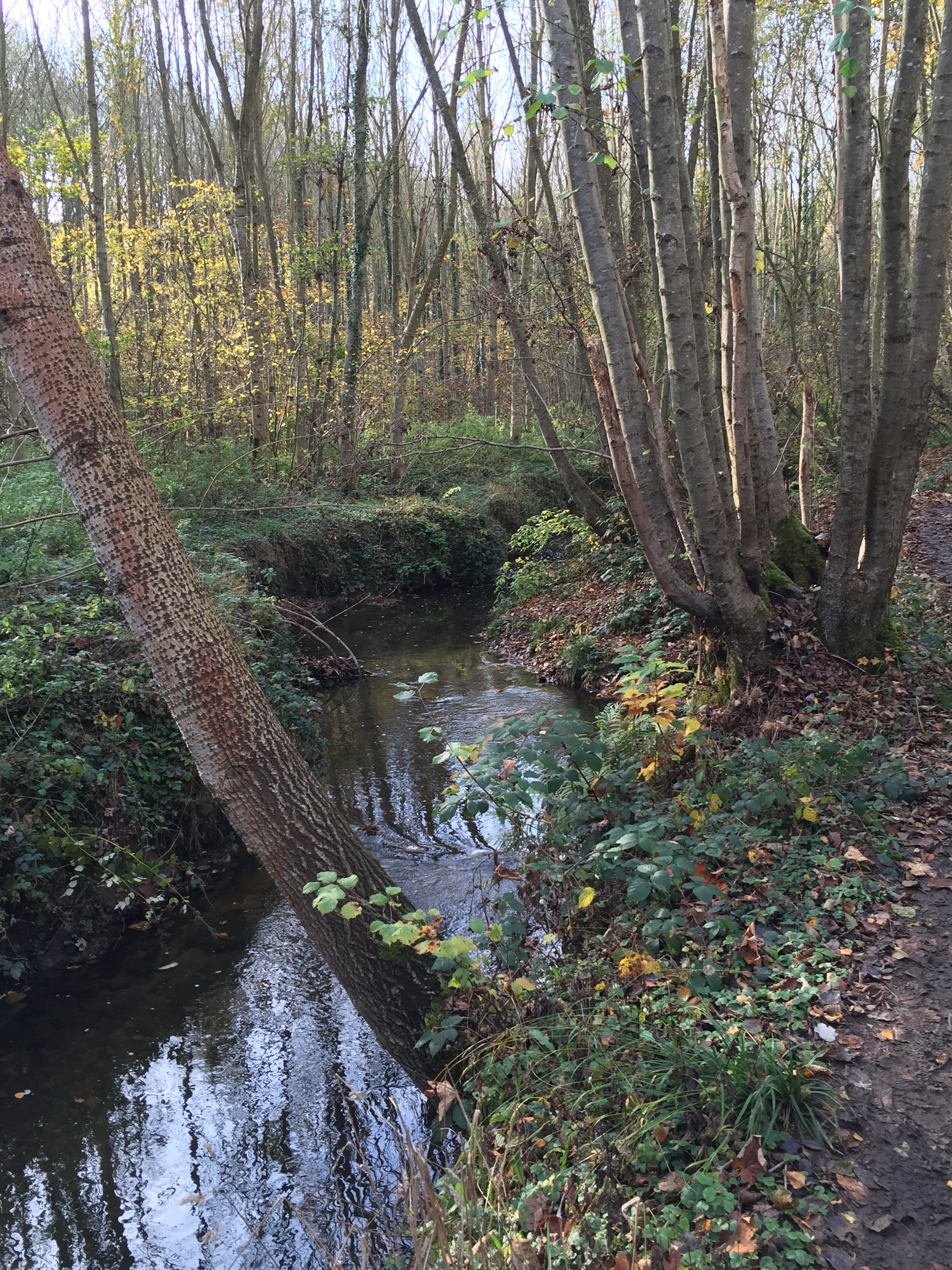 La Bièvre, cette minuscule rivière des Yvelines fait toujours son numéro de charme et n’en finit pas d’attirer randonneurs, joggers, VTT et autres promeneurs. C’est ici que Michel, un de mes potes du club avait décidé de me faire passer un petit examen de guide pour l’association Sport et Nature. Pour l’occasion, il nous avait concocté un tour des étangs au départ de la gare de Versailles-Chantier. Ce dimanche matin de novembre, le thermomètre avait un peu perdu la raison et affichait près de 15° ! Résultat, pas moins de 38 randonneurs avaient renoncé à la grasse-mat’ et s’agglutinaient devant la gare pour écouter les instructions habituelles de base d’une rando en groupe. Vu le nombre, la première responsabilité du guide reste avant tout la sécurité . Notamment tous les franchissements de routes demandent une réelle vigilance. La seconde est bien sûr de ne perdre personne en chemin . Vu que le groupe peut s’étirer sur plus de 500 m , un randonneur décroché peut très bien perdre de vue le peloton et paniqué. Soit dit en passant la plupart des randonneurs d’association ne sait pas ou refuse de lire une carte ! Côté parcours, nous avions prévu une longue boucle autour des étangs du Val et de la Geneste. Sport et Nature avait annoncé sur son blog : niveau Facile, peu de dénivelé, d’où l’affluence en ce WE particulièrement chaud. Ma première expérience de guide fut marquée par une erreur classique. En effet, le matin j’avais mené le groupe d’un bon train, voire un train trop rapide. Résultat, une bonne dizaine de randonneurs se sont plaint à la pause de 11h: » on avait dit facile..etc etc.. ». Bref ça râlait un peu dans les rangs et il a fallu lever le pied l’après-midi. Le déjeuner ayant été copieux et bien arrosé, comme d’habitude, le rythme général chuta rapidement.