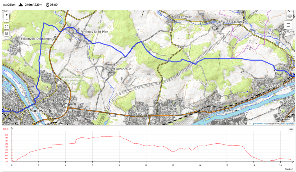 Cette randonnée dans le Vexin sud vous fera découvrir une partie très agricole de ce parc naturel de 65.000 ha . Les champs s’étendent ici à perte de vue à l’horizon, un décors parfois un peu monotone strié des lignes à haute tension qui partent de la centrale de Porcheville. L’itinéraire relativement plat ne comporte pas de difficulté . Très à découvert, je vous conseillerais de l’effectuer par température clémente. L’hiver cette étendue peut être balayée par un vent d’ouest glacial en offrant très peu d’abri. En été , au besoin il est possible de trouver de l’eau au cimetière de Fontenay Saint-Père à 200 m de l’église . L’arrivée à Mantes-La-Jolie se fait en traversant la Seine. Une nouvelle passerelle double le pont et offre un joli point de vue sur l’ancien ouvrage . Si ce n’est déjà fait , ne manquez pas de visiter la splendide collégiale du XII et XIIIe siècle qui ressemble comme une soeur à celle de Notre-Dame.