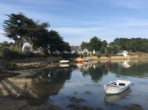 A deux pas des golfeurs sûrement venus d’une autre planète tapent la balle dans des rafales à 30 nds et par -4°c. On enchaîne ainsi les longues plages du Fogeo, de Kerver, des Govelins avant d’atteindre la Pointe du Grand Mont et la côte rocheuse de Saint-Gildas. Des familles profitent de la belle fin d’après-midi pour mettre le nez dehors en bouclant quelques kilomètres sur ce fameux chemin des douaniers. Jambes engourdies par le froid, fatigués par seulement 17 km, nous quittons le GR à Saint-Jacques et la plage devenue soudain inhospitalière pour prendre la route abritée vers Trévenaste et rejoindre enfin Le Rohalinguen. Cette côte sud de la Presqu’ile de Rhuys manquait au programme de Christine, la régionale estivale de l’étape. Dépeuplé de ses touristes, le GR breton 100% pur beurre et granit nous a encore révélé quelques trésors de sa beauté magnifiée ce jour-là par tant de lumière. Game over, la tisane, le far breton-maison et le petit radiateur à huile du salon réchauffent lentement les corps. Il est à peine 20h, le thermomètre extérieur s’affole de nouveau, une nouvelle nuit polaire s’annonce. Demain la médiathèque de Sarzeau et le Ty Poul, le café associatif local, feront encore le plein de visiteurs frileux. Le 10 juillet prochain la bourgade accueille la 4e étape du Tour de France, l’ambiance pourrait devenir cette fois torride !
